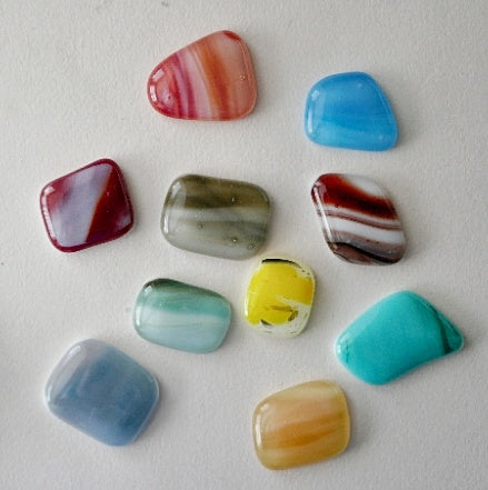 Fused glass cabochons on their own, for arts and crafts projects or just for having. You will receive the 10 cabochons pictured.