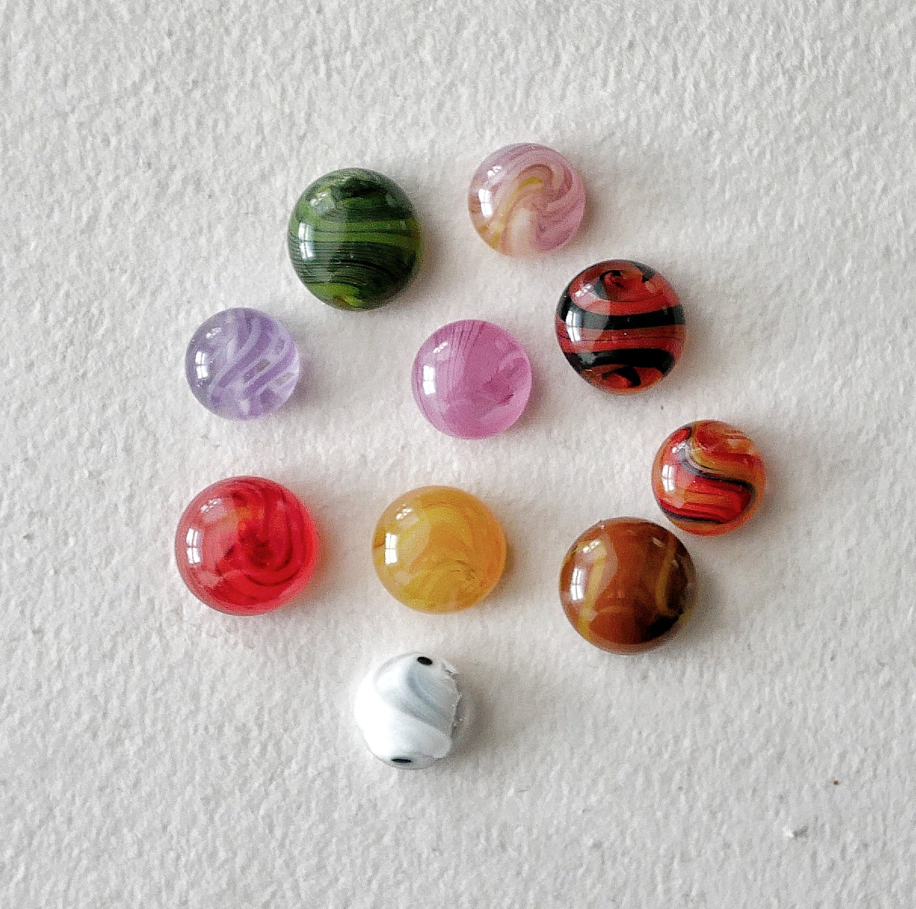 A small collection of tiny glass pieces. For use as game tokens, for arts and crafts projects, or for whatever else you can think of!