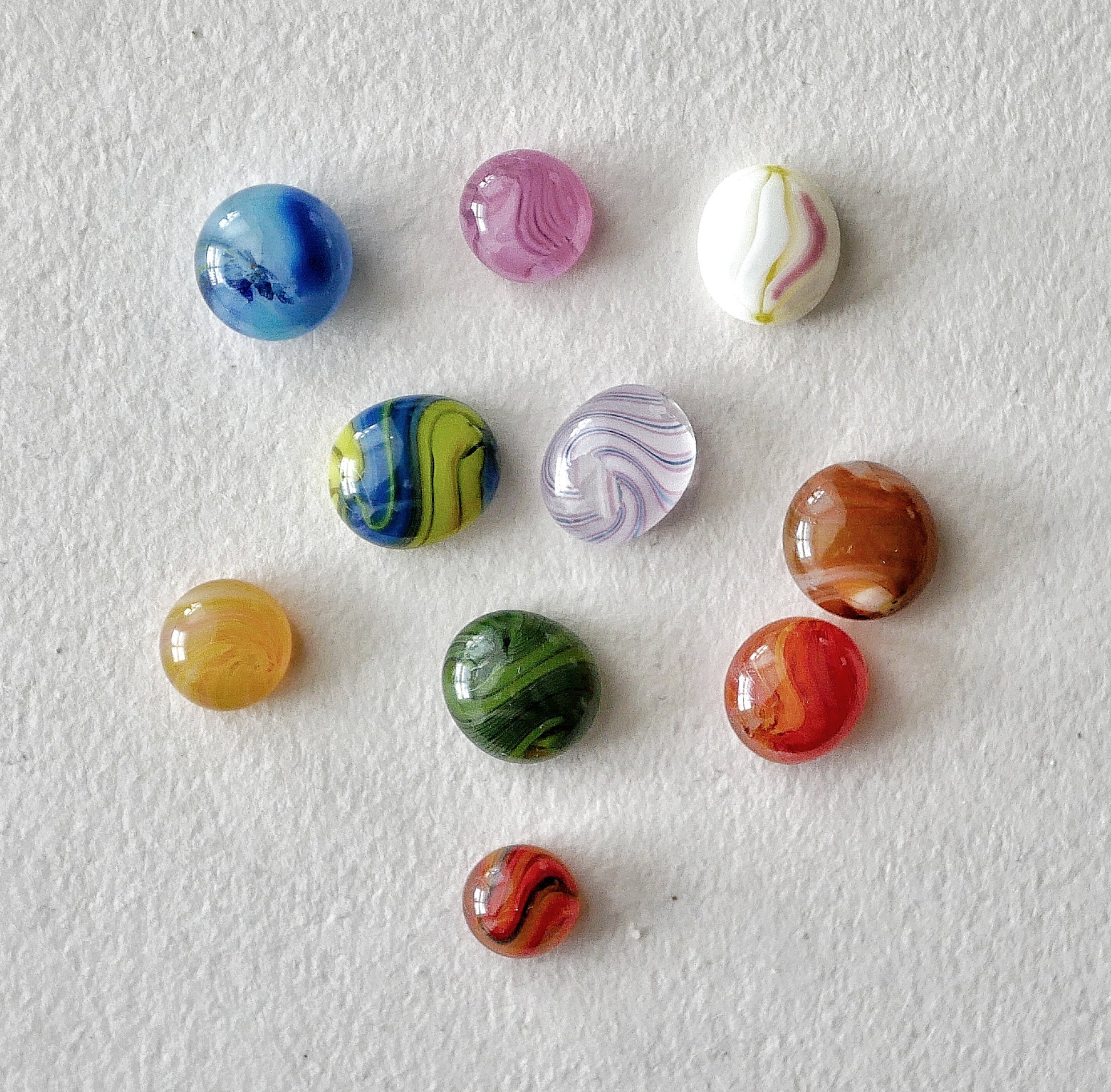 A small collection of tiny glass pieces. For use as game tokens, for arts and crafts projects, or for whatever else you can think of!
