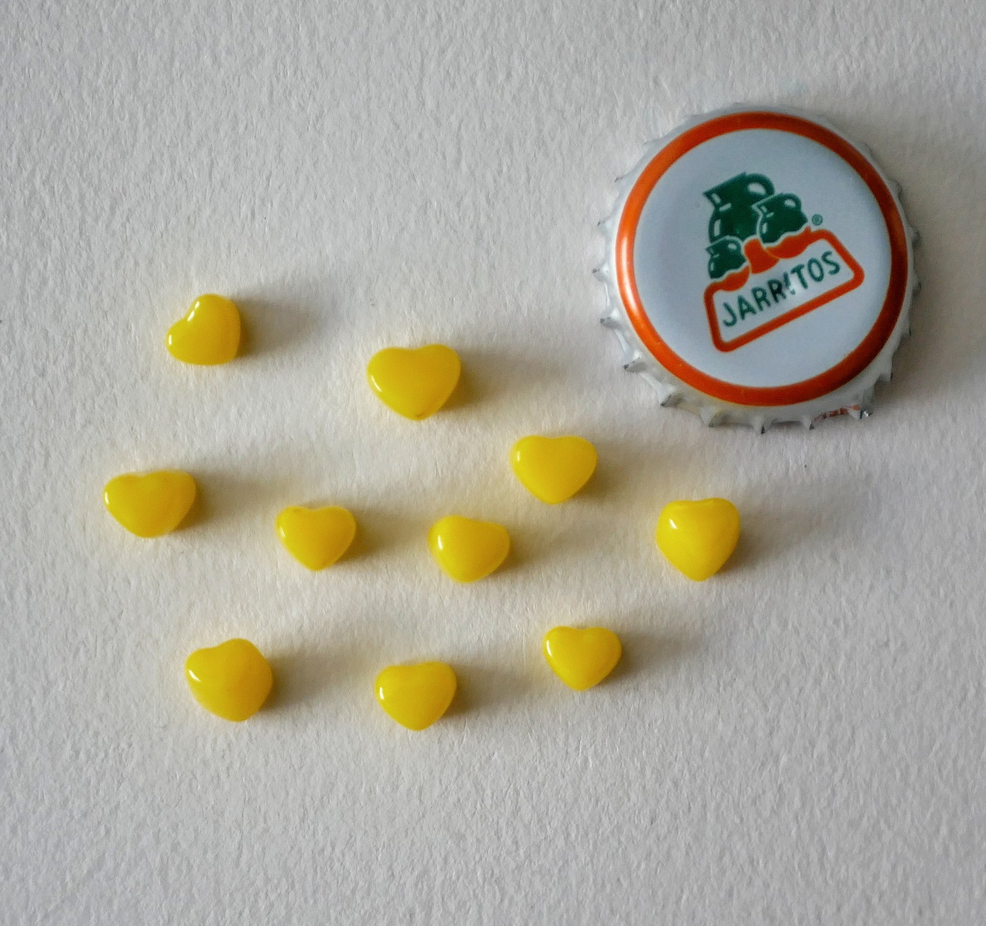 A small collection of tiny glass hearts. For use as game tokens, for arts and glass projects, or for whatever else you can think of!