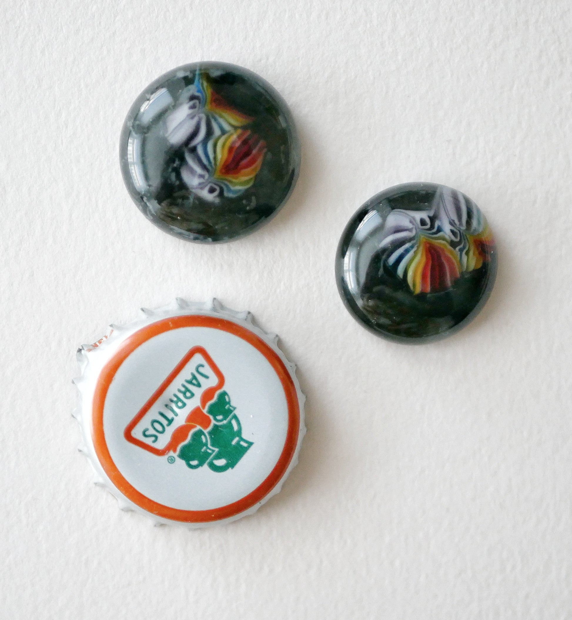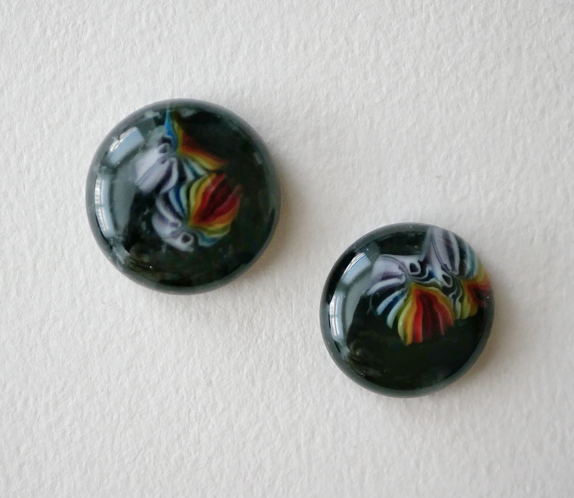 A pair of small glass pieces. For use as game tokens, for arts and crafts projects, or for whatever else you can think of!