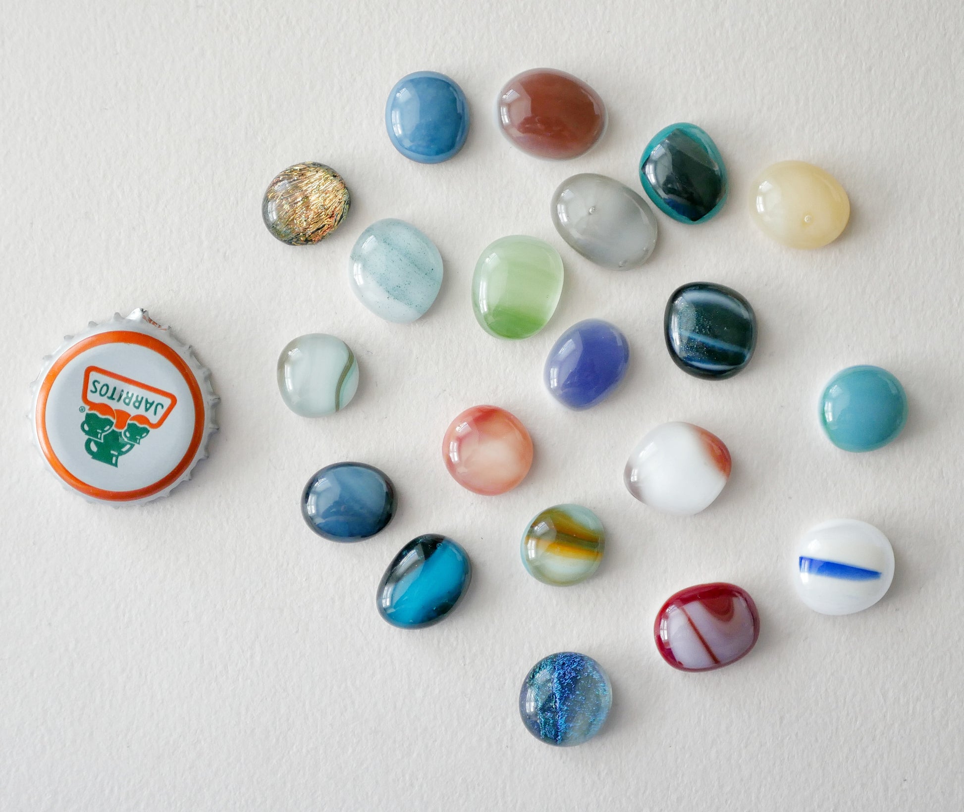 A small collection of tiny glass pieces. For use as game tokens, for arts and glass projects, or for whatever else you can think of!