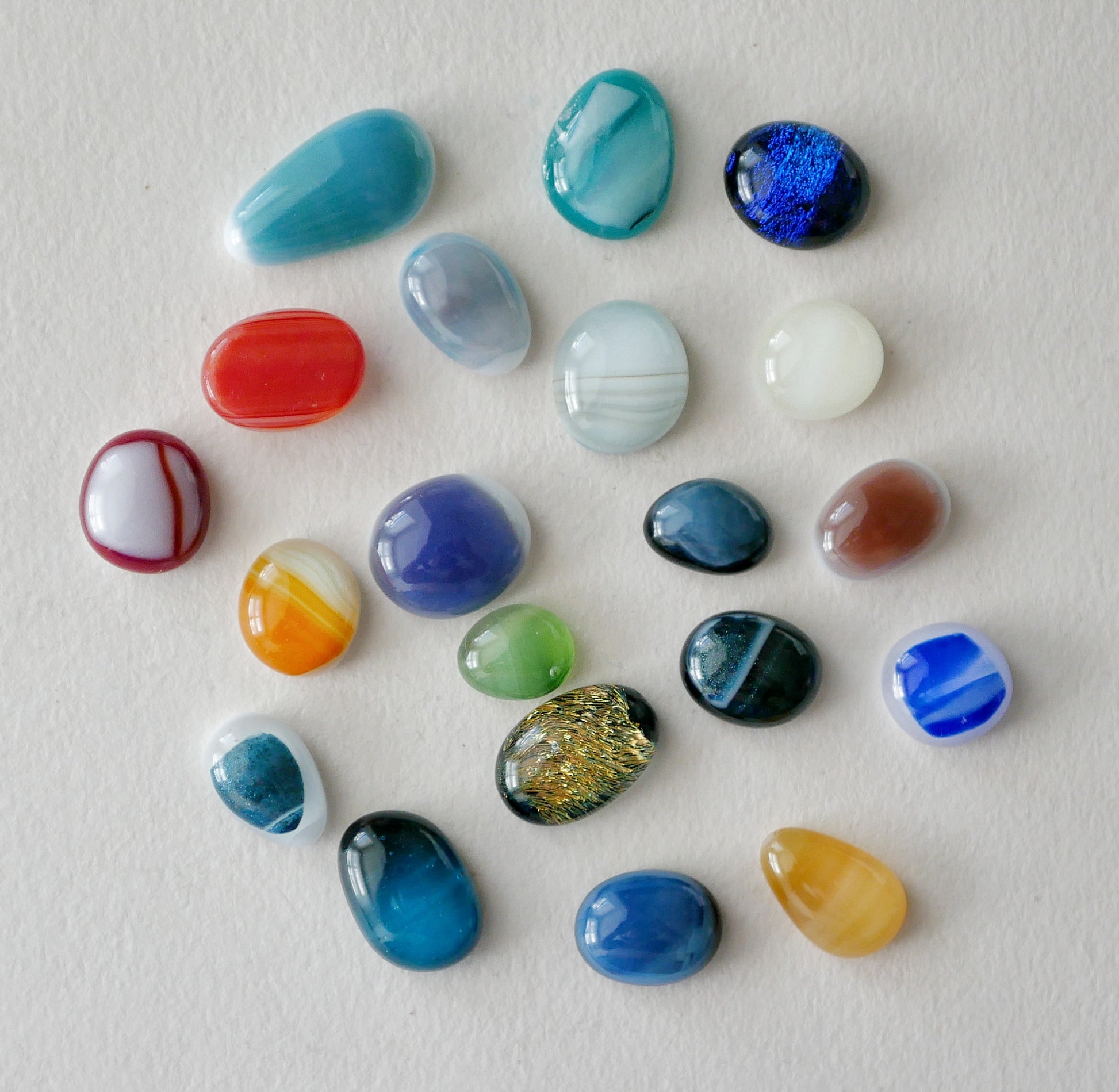 A small collection of tiny glass pieces. For use as game tokens, for arts and glass projects, or for whatever else you can think of!