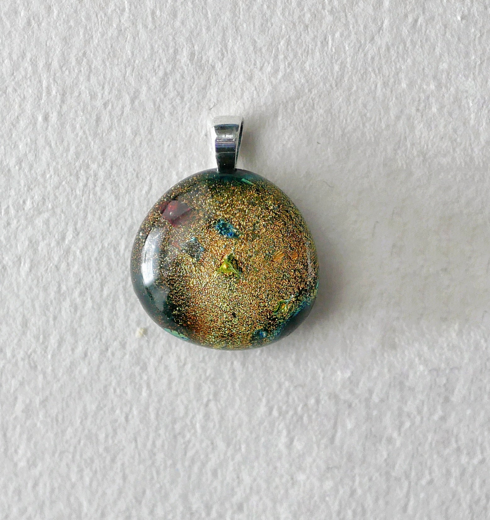 Handmade in my kiln by me! A small pendant with a sterling silver bail.