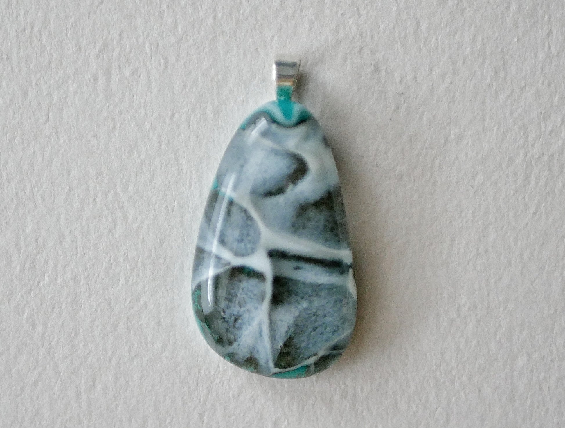 Aqua and Grey Dragonskin Pendant #1 (Sterling Silver) (PENDANT ONLY)