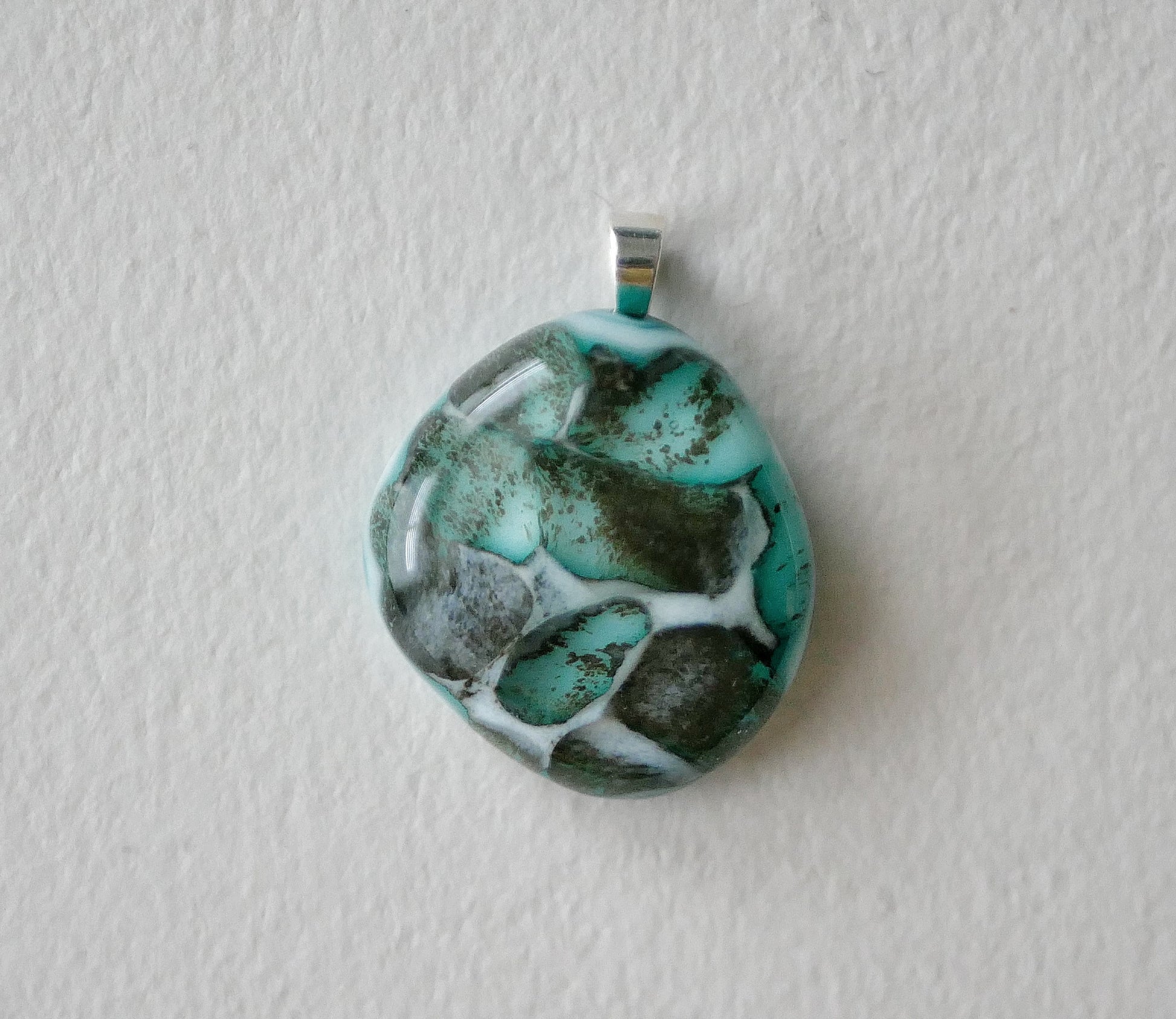 Aqua and Grey Dragonskin Pendant #4 (Sterling Silver) (PENDANT ONLY)