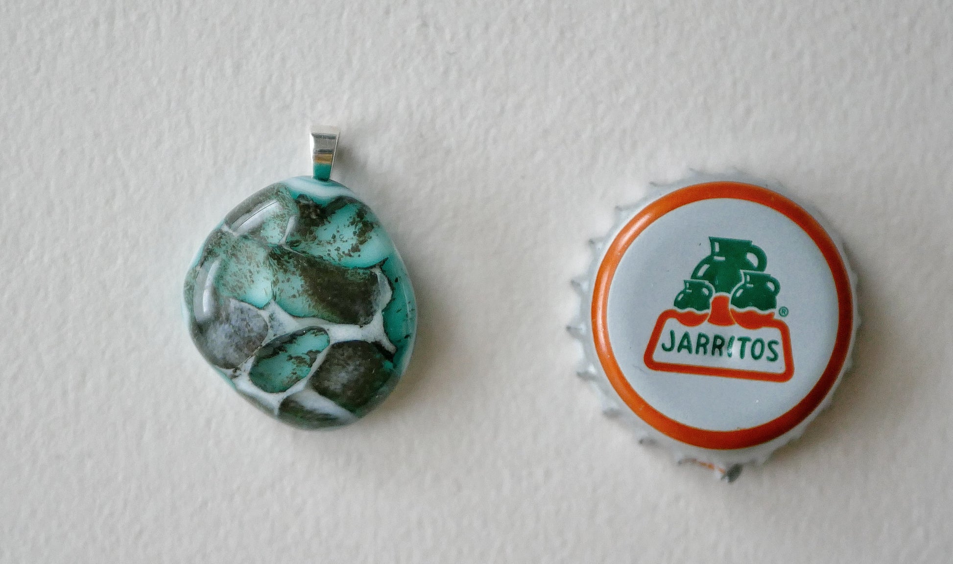 Handmade in my kiln by me! A pendant with a pattern resembling dragon scales.