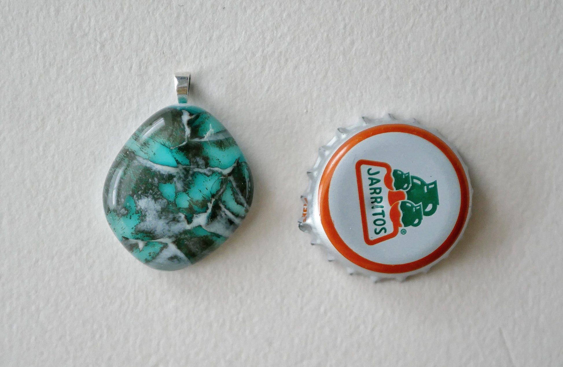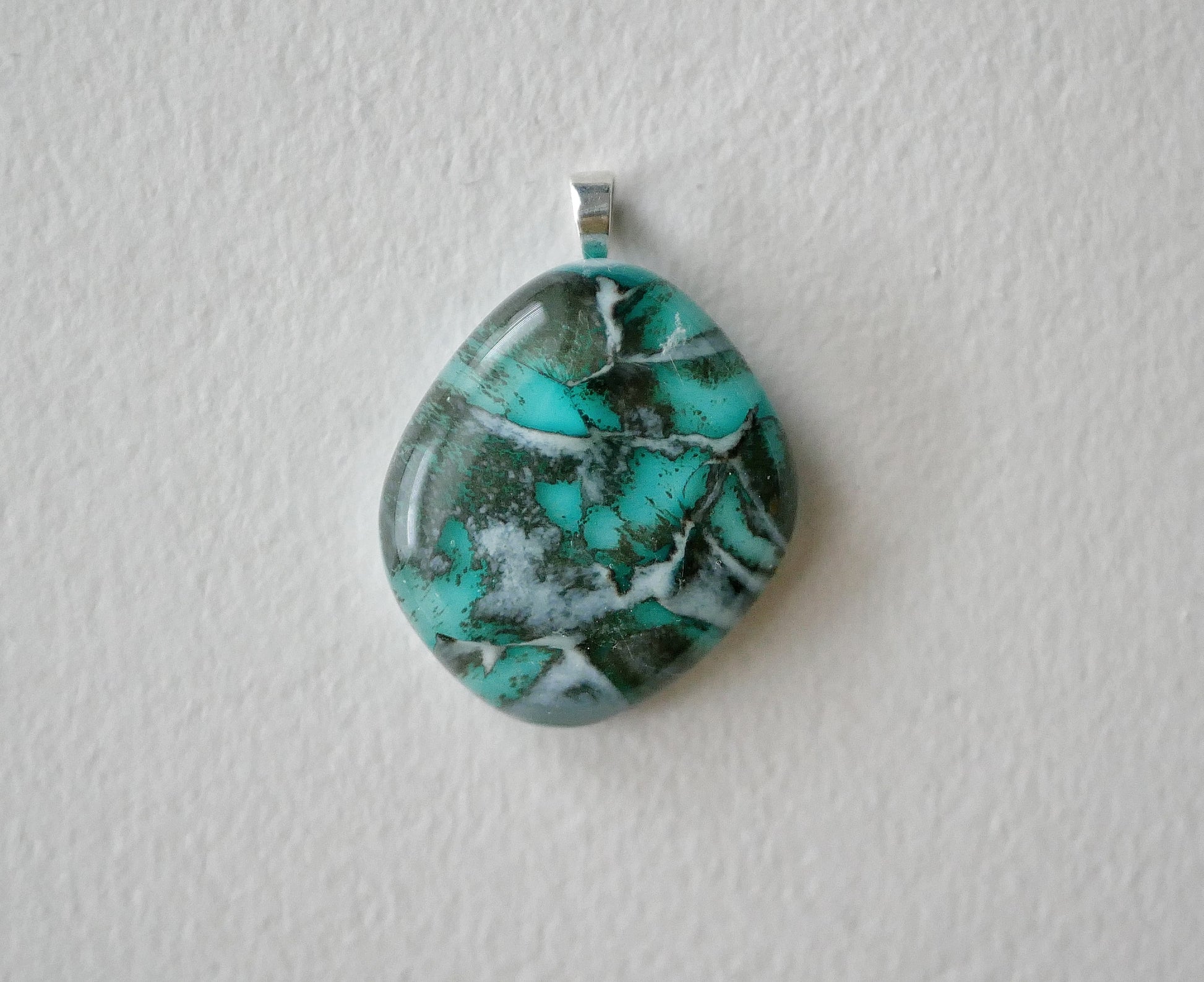 Handmade in my kiln by me! A pendant with a pattern resembling dragon scales.
