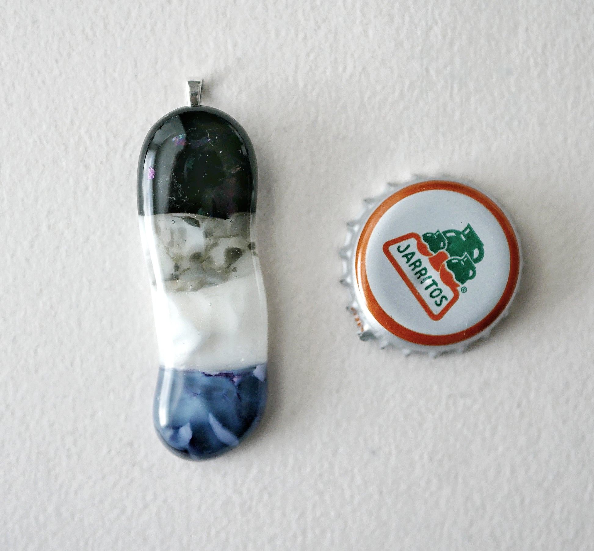 NOTE: This is a handmade glass item. That means it's a little bit fragile. I recommend not wearing it with other necklaces that can clink against it, avoiding dropping it, and don't take it suddenly from one temperature to another. Art glass is not mouth safe.