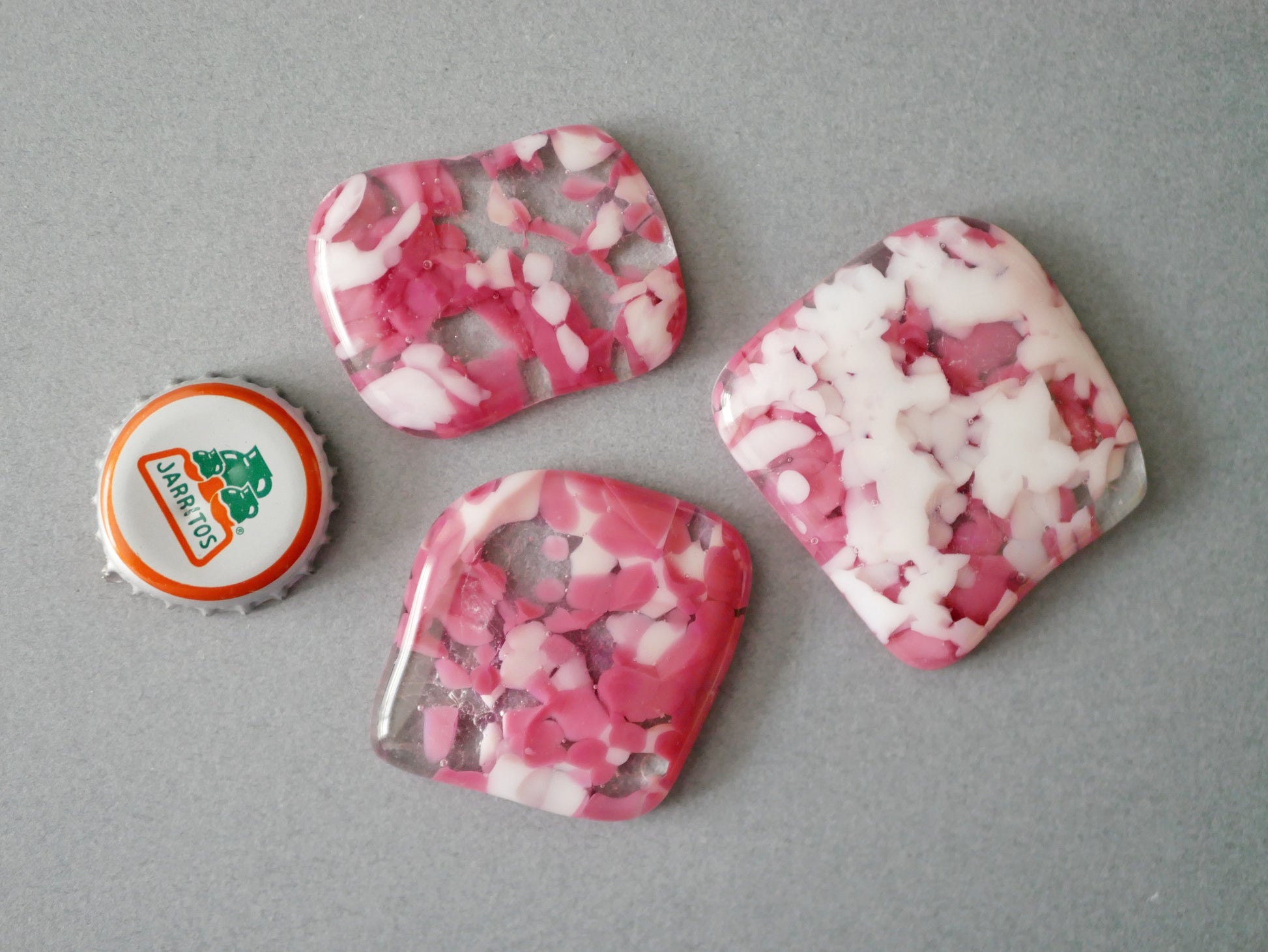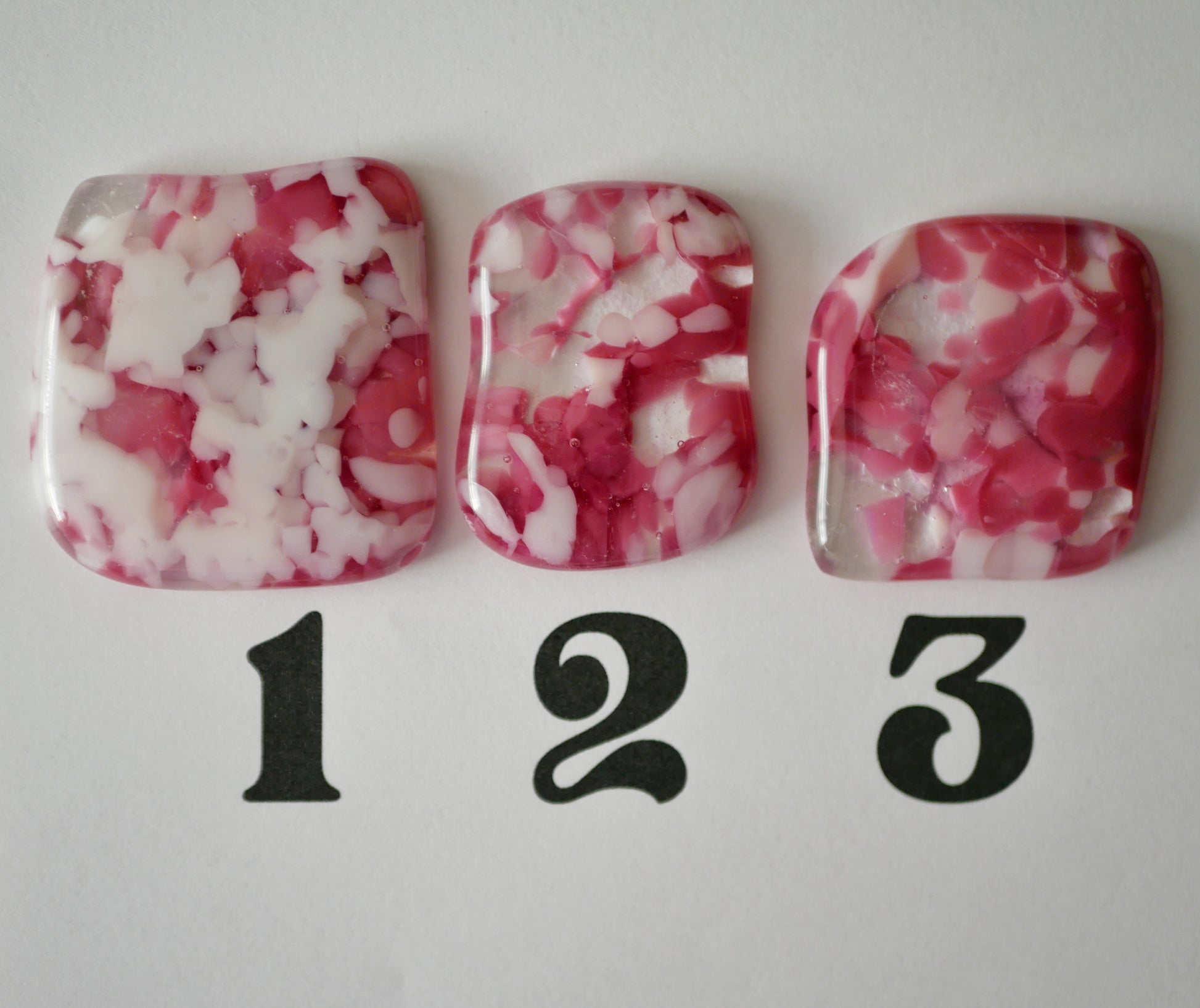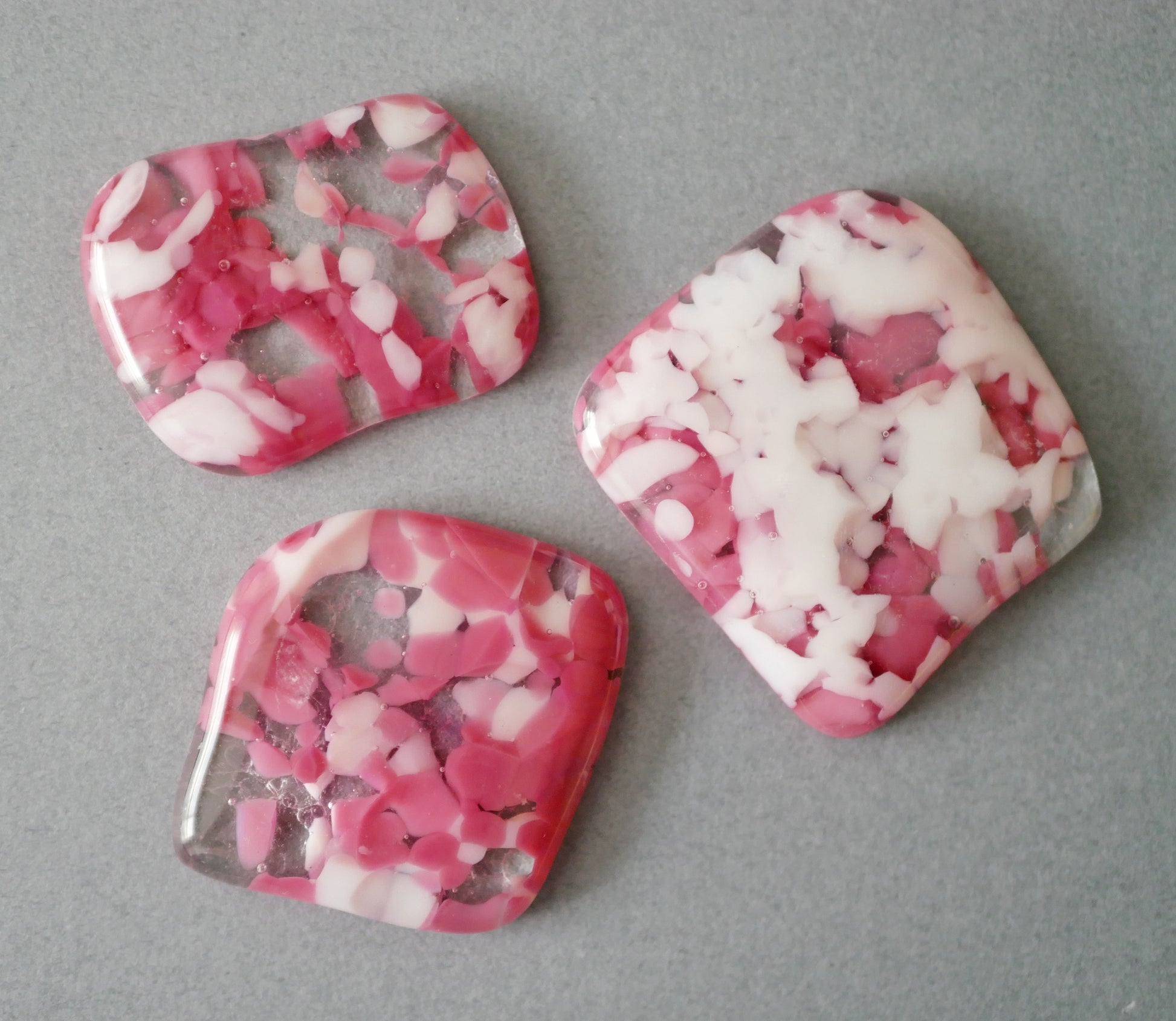 Fused glass cabochons on their own for use as game tokens, for arts and crafts projects or just for having.