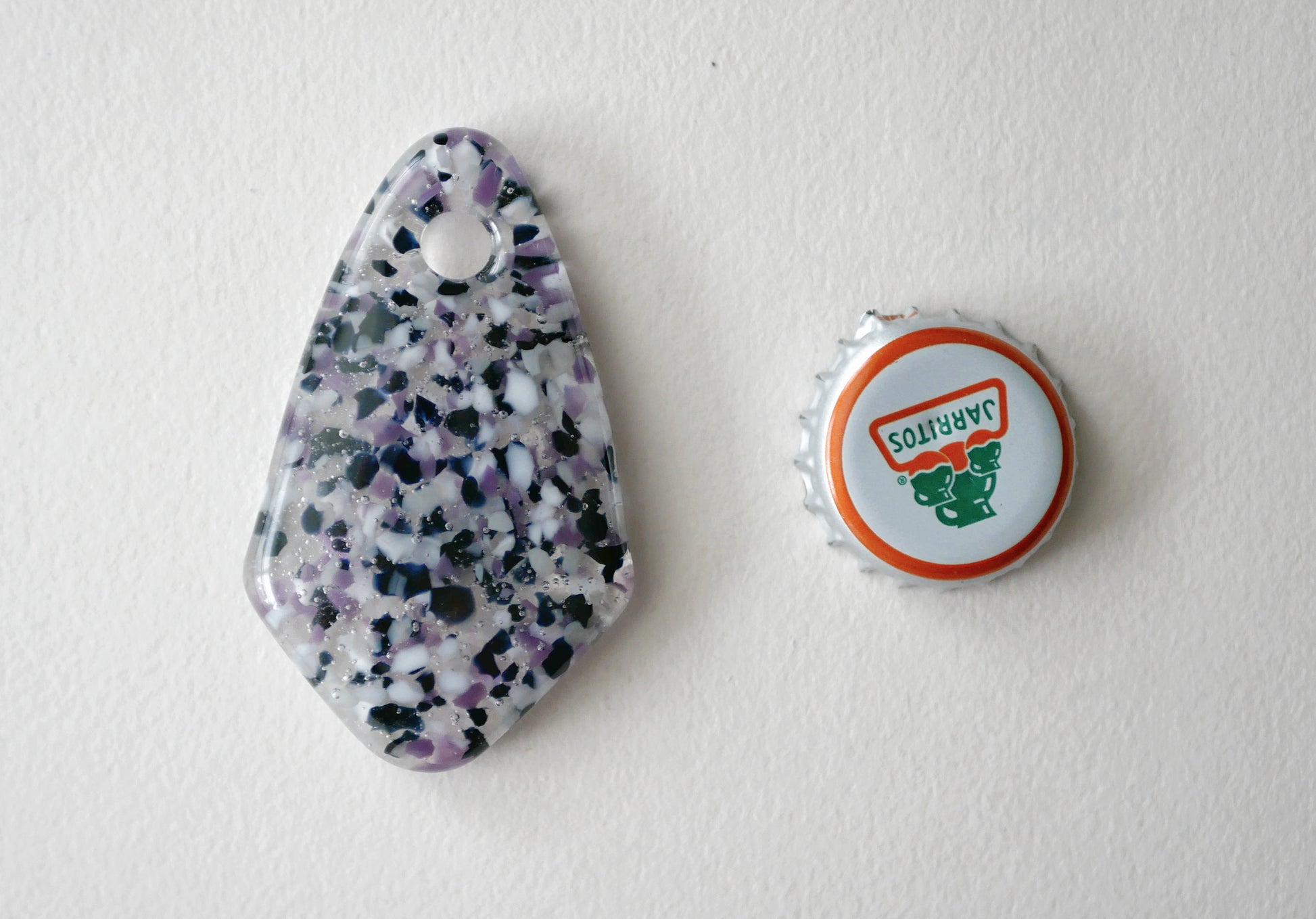 Handmade in my kiln by me with a subtle nod to the lesbian sunset flag with the mottled five colors mixed with clear for a confetti effect. There's a few of these that have slightly different patterning, you may not receive the exact one in the picture.