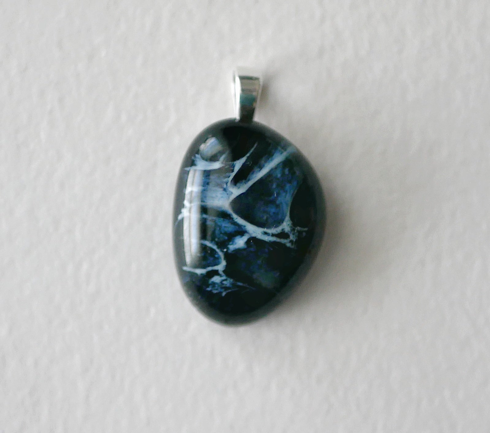 Handmade in my kiln by me! A small pendant with a sterling silver bail.