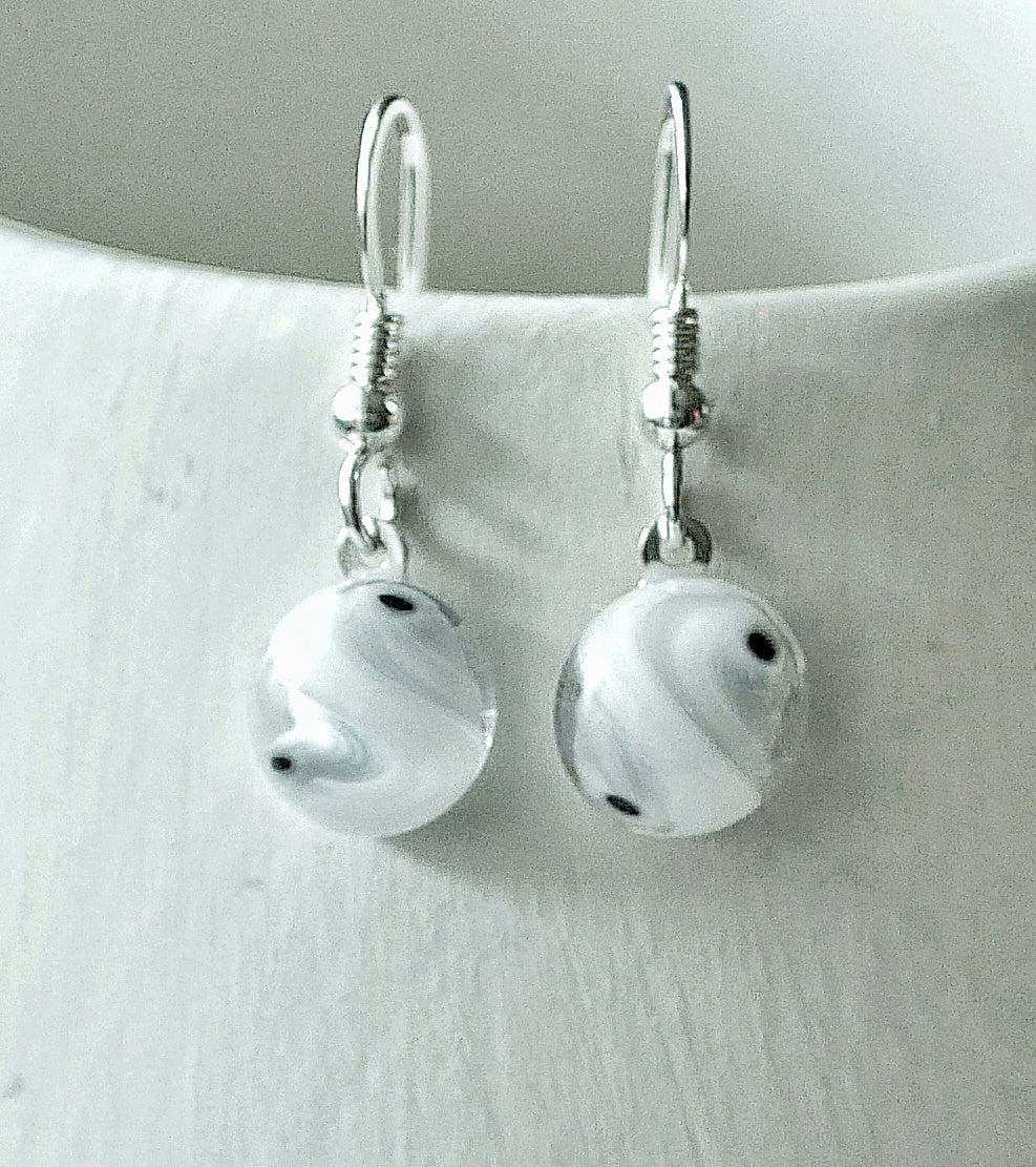Black, White and Black Dangly Swirl Earrings #1