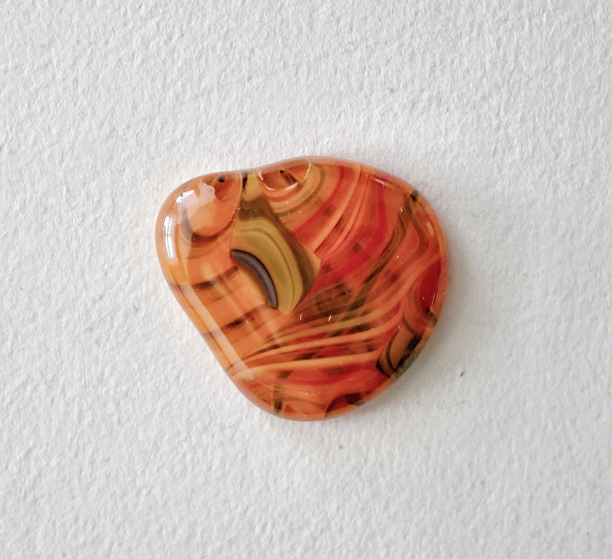 A piece of handmade fused glass, great as a gift to remind someone you love them. My worry stones have a smooth glass top and a slightly textured bottom from the ceramic molds they were made in. They also have just a slight indentation in the bottom. They feel good in your hand.