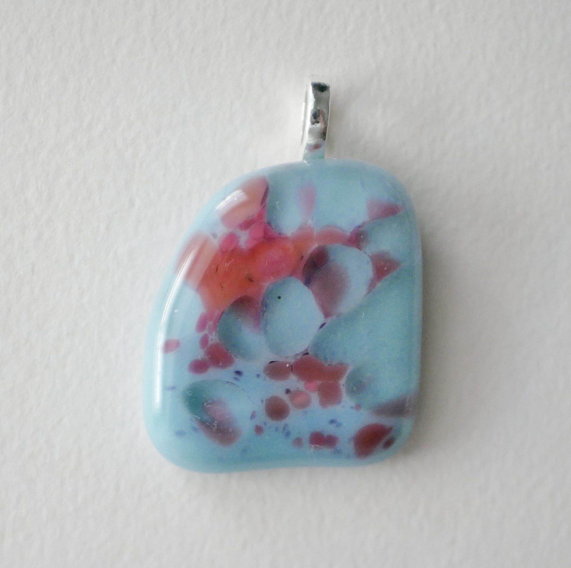 Handmade in my kiln by me! A small pendant with a sterling silver bail.