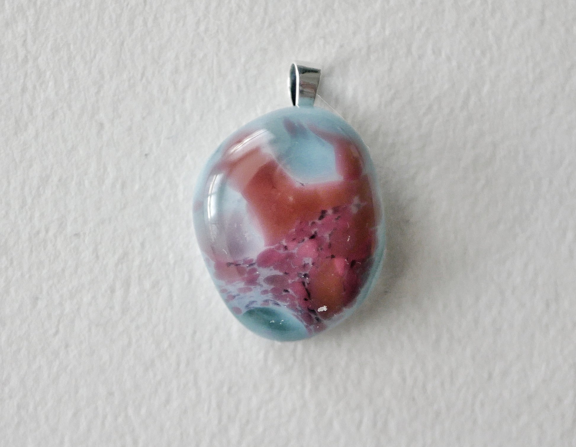 Handmade in my kiln by me! A small pendant with a sterling silver bail.