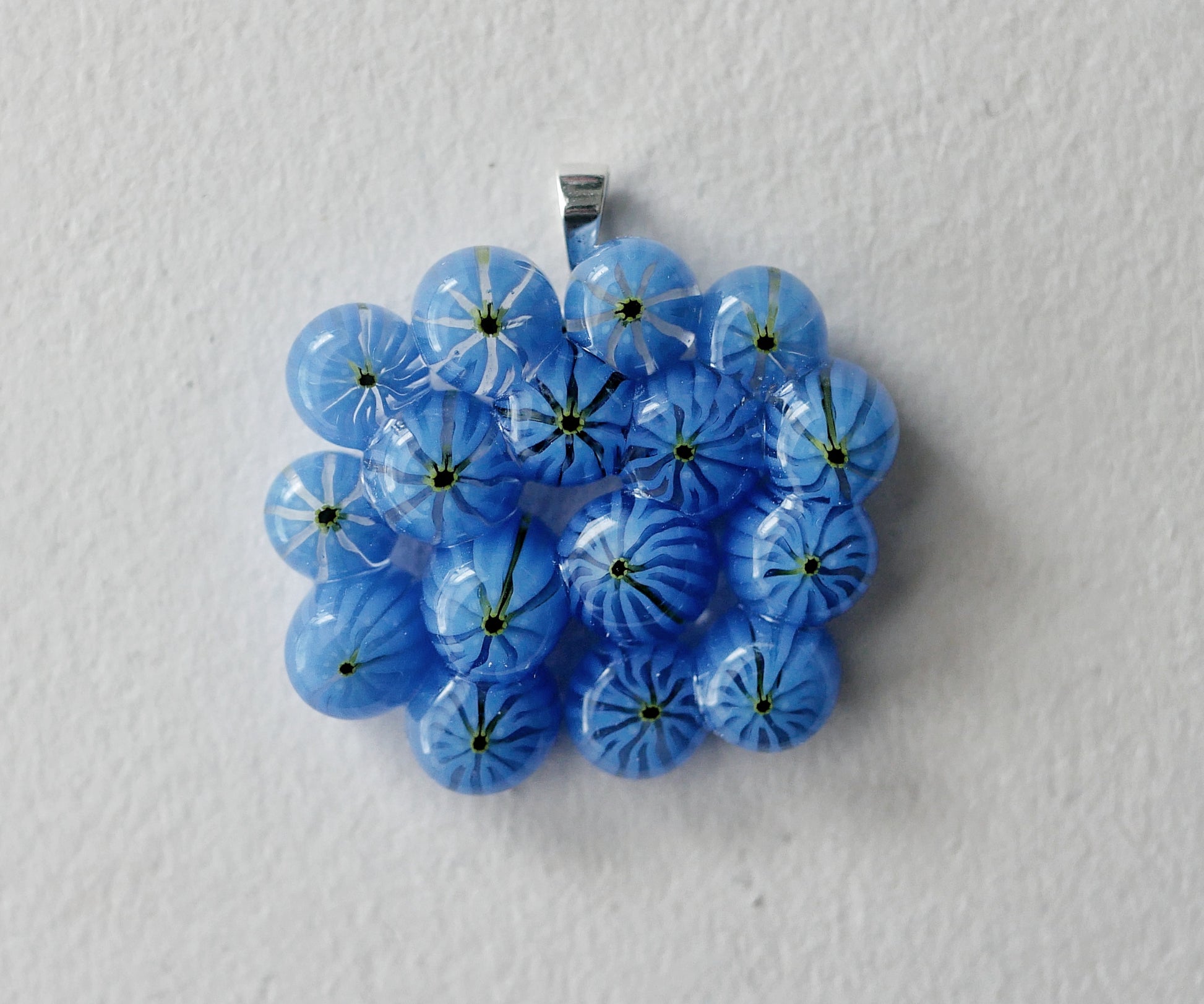 This one uses murrine cane that has been rounded but not fully melted, making the final piece bumpy. Because of this it has thinner parts and the joinings are a little bit less sturdy; you're going to want to be extra careful with it.