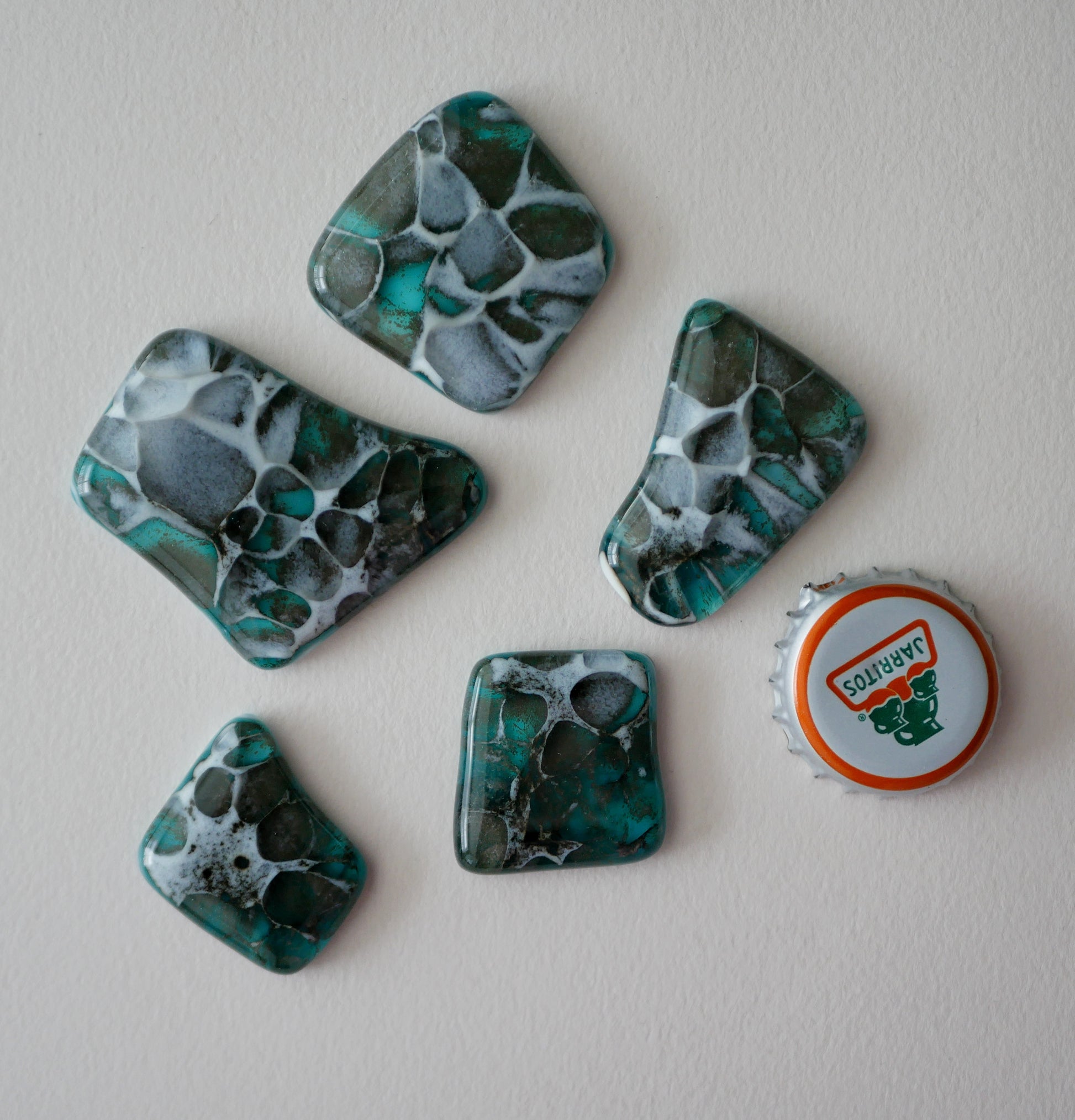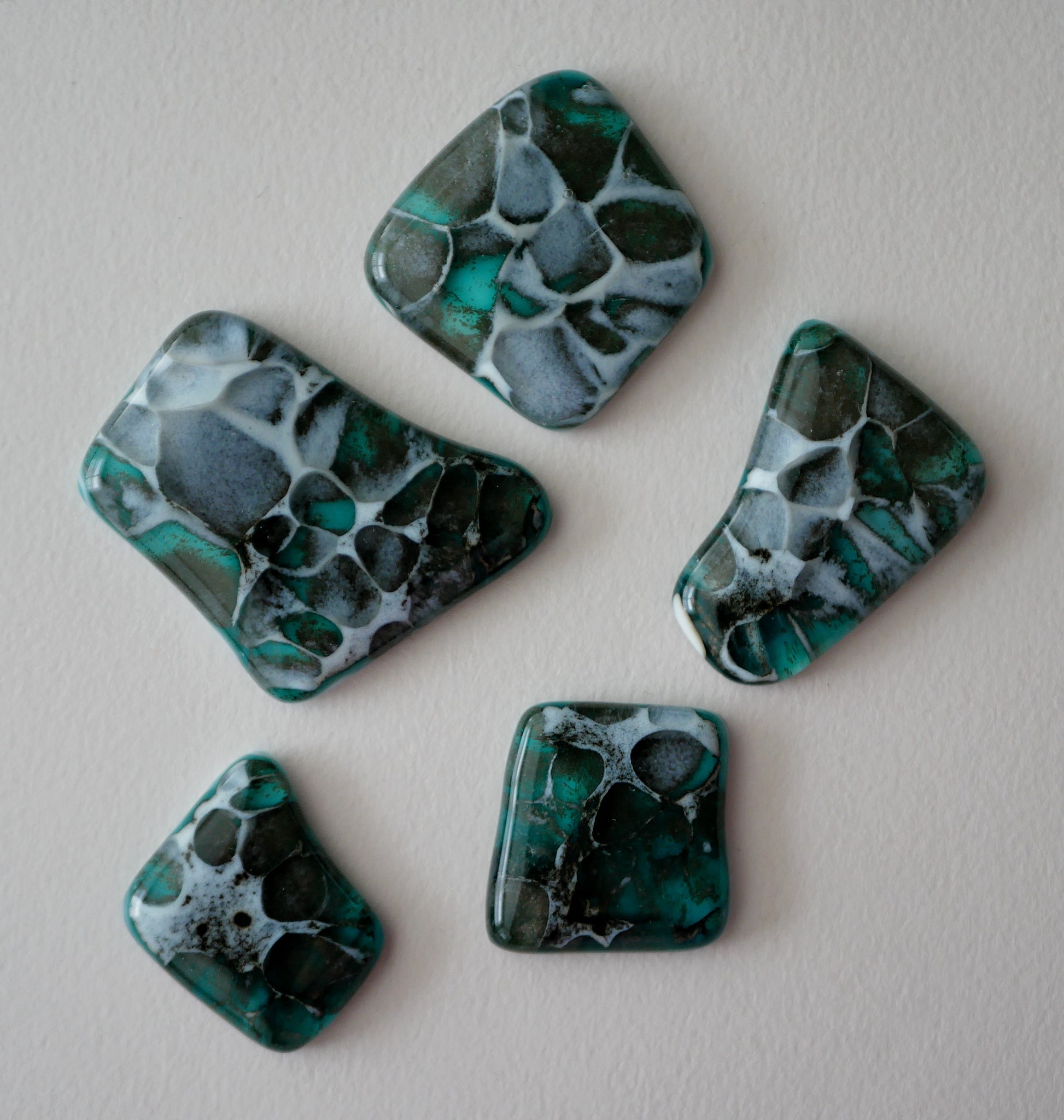 Fused glass cabochons on their own, for arts and crafts projects or just for having. You will receive the 5 cabochons pictured.