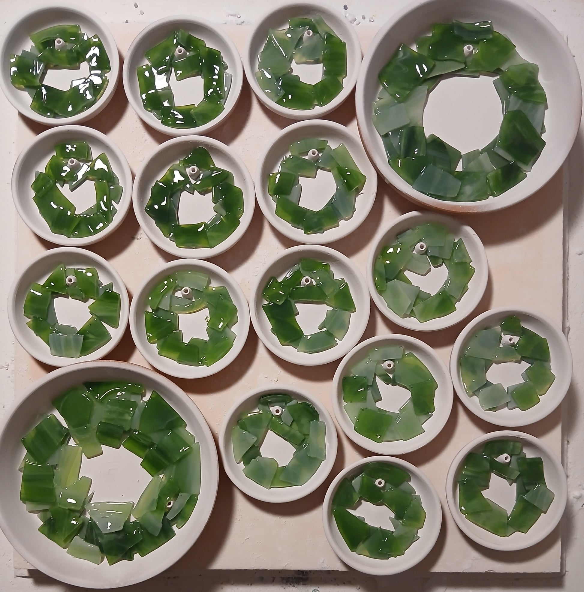 Customize your glass wreath with cabochon ornaments in your favorite color combinations! Pick up to 3 colors of ornament and I'll fuse them onto your wreath. PLEASE BE SURE YOU INCLUDE A NOTE AT CHECKOUT WITH YOUR CHOICE!!