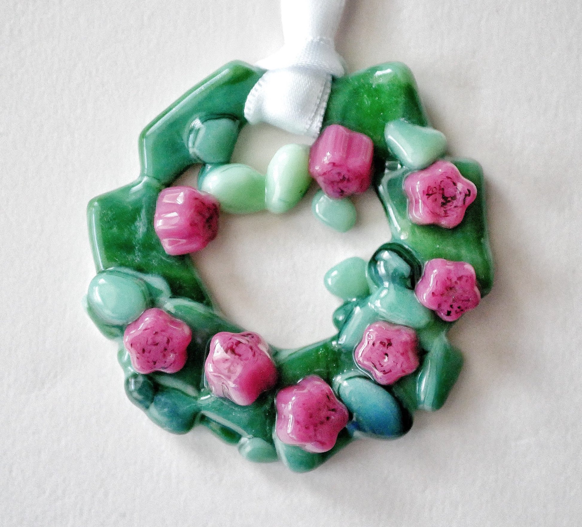 Handmade in my kiln by me! These work nicely as Christmas tree ornaments but also look good hanging on a wall or in a window. They come with a loop of ribbon for hanging.
