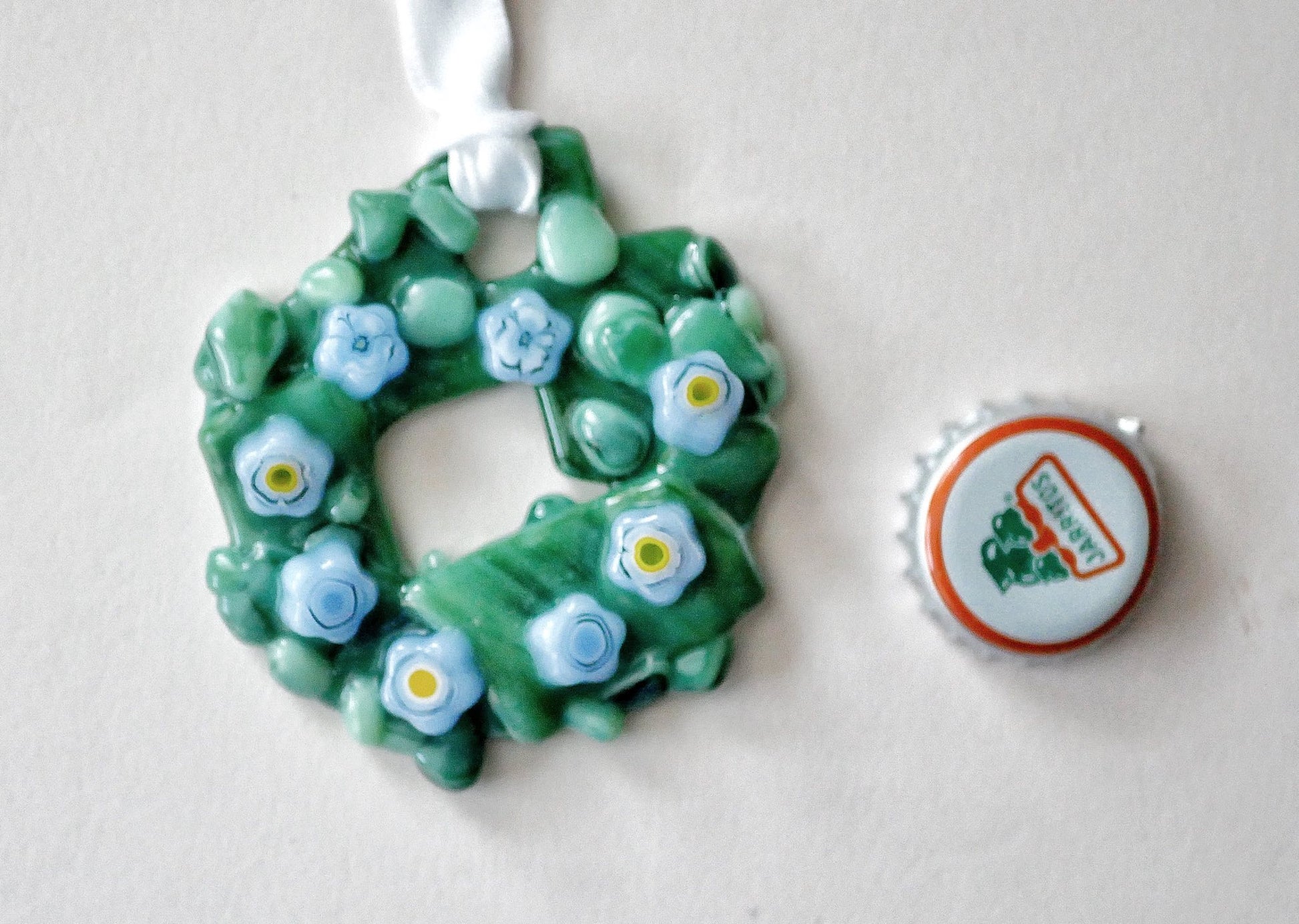 Handmade in my kiln by me! These work nicely as Christmas tree ornaments but also look good hanging on a wall or in a window. They come with a loop of ribbon for hanging.