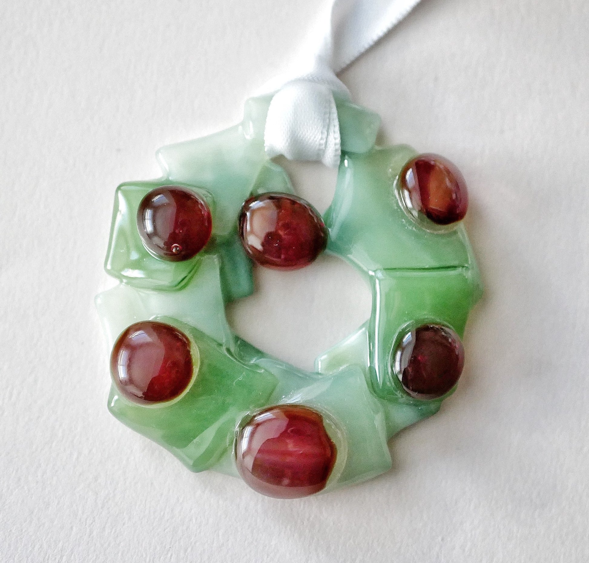 Handmade in my kiln by me! These work nicely as Christmas tree ornaments but also look good hanging on a wall or in a window. They come with a loop of ribbon for hanging.