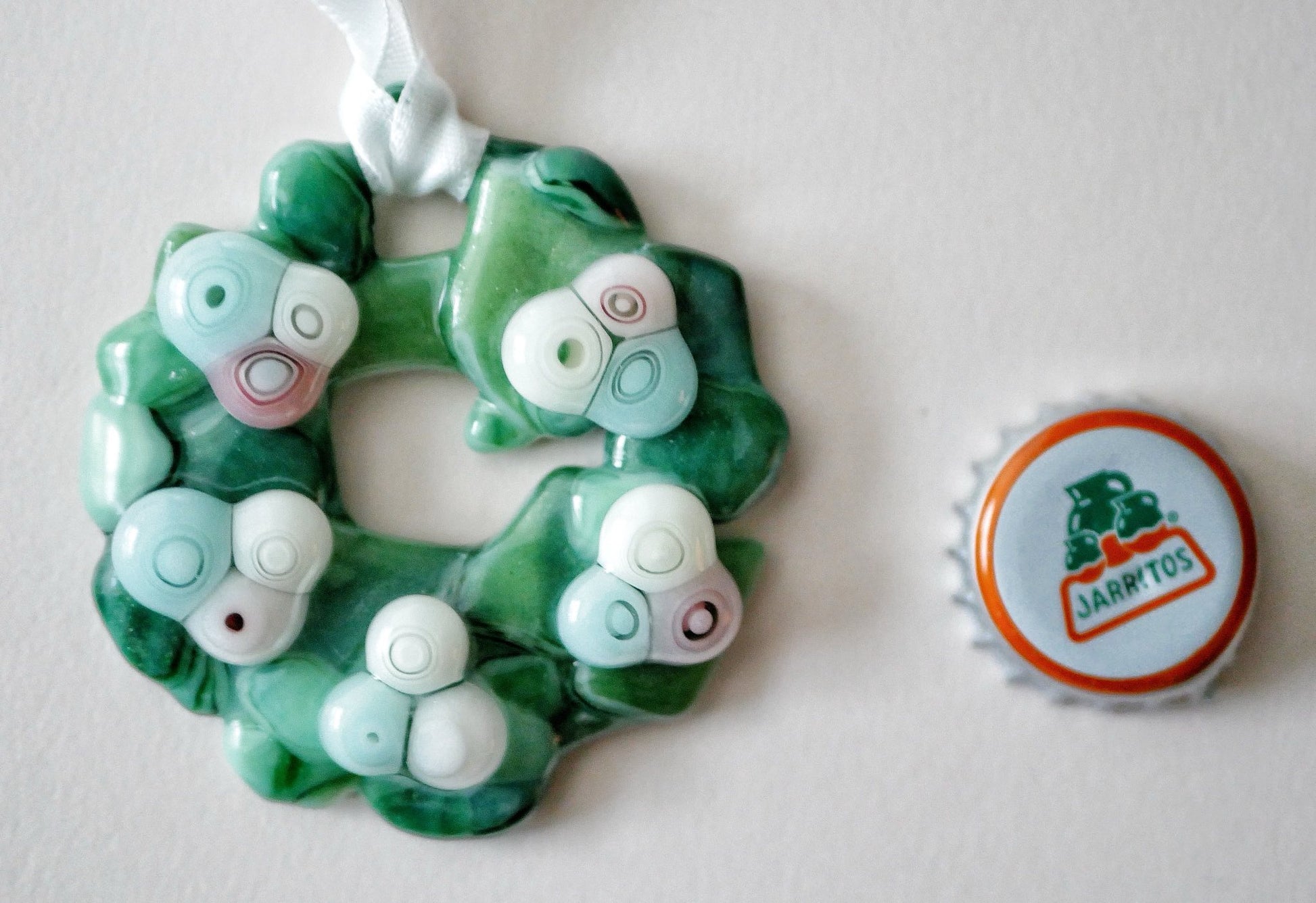 NOTE: This is a handmade fused glass item. It's sturdier than a blown glass ornament, but I would avoid dropping it as well as taking it suddenly from one temperature to another.