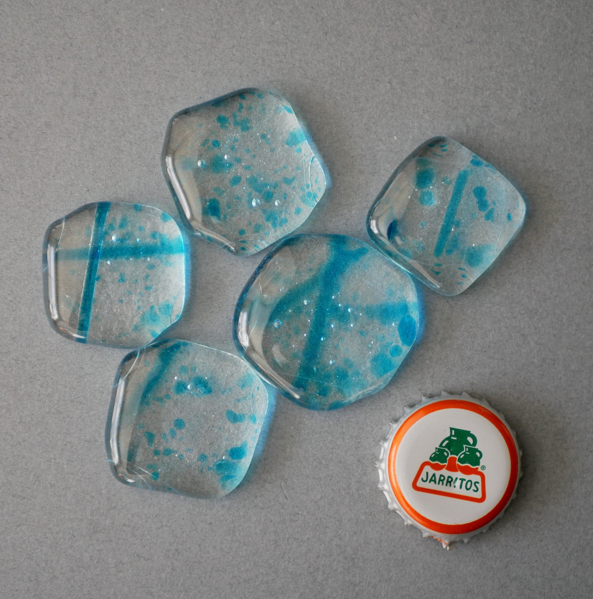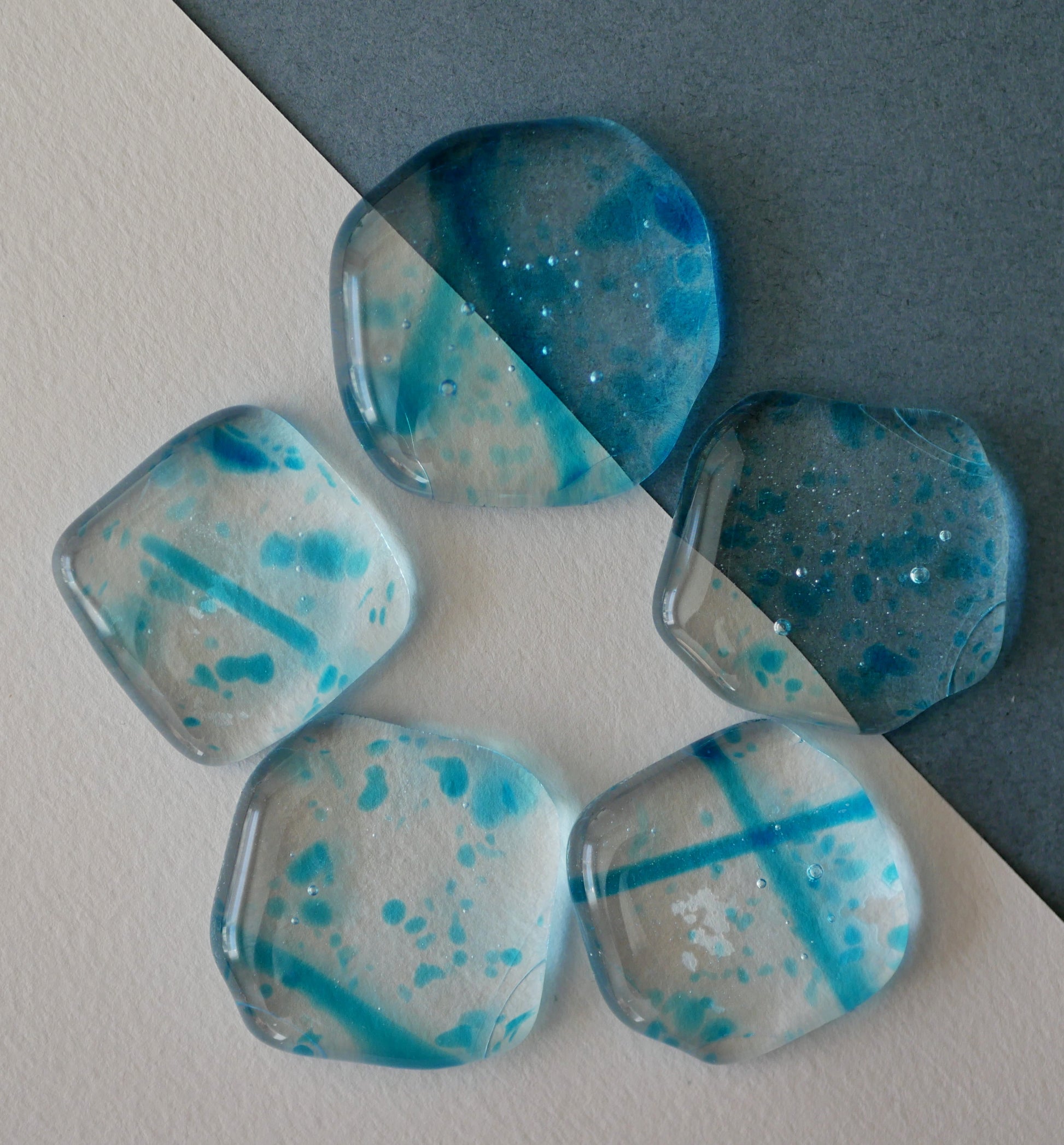 Fused glass cabochons on their own, for arts and crafts projects or just for having. You will receive the 5 cabochons pictured.