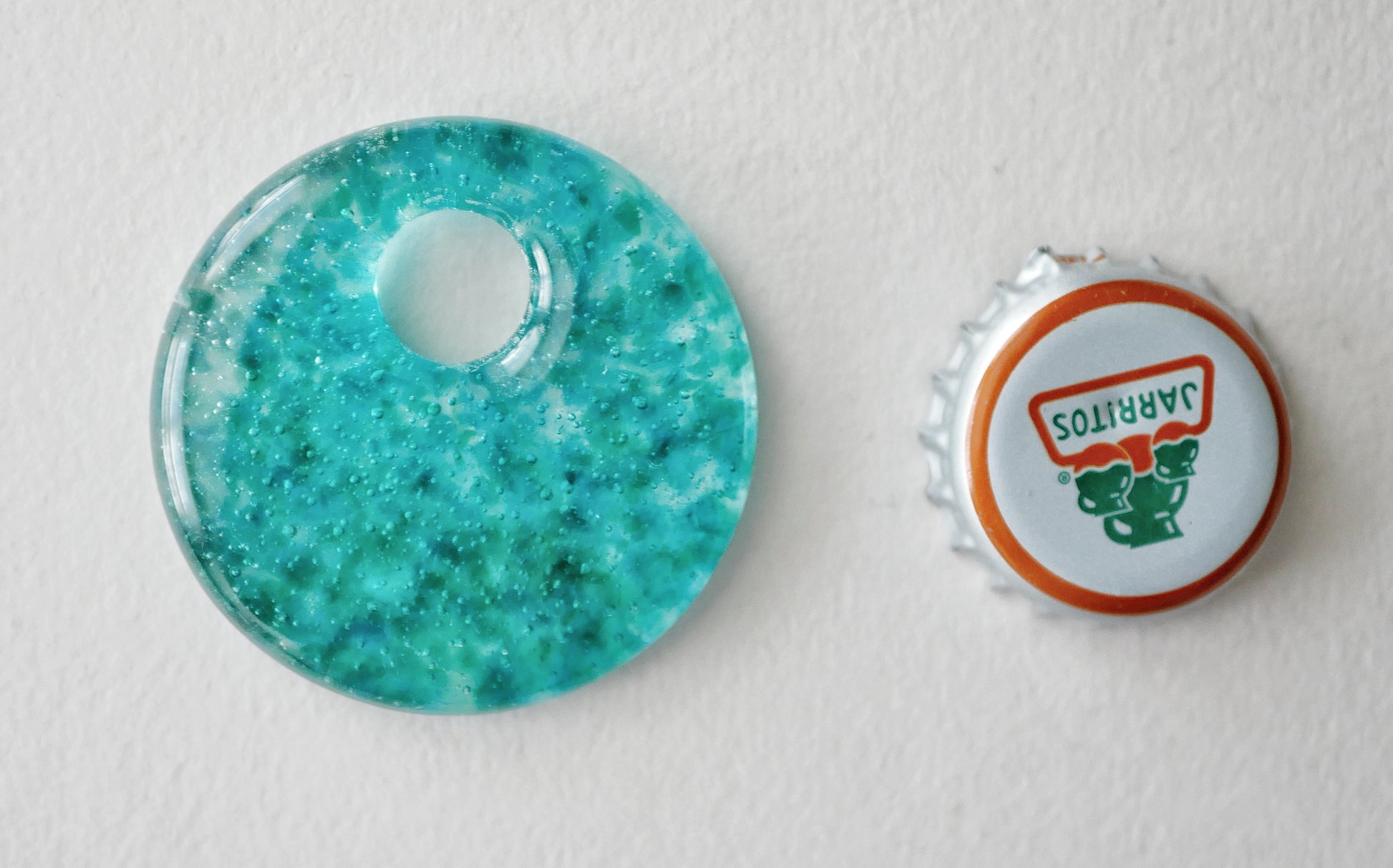 Handmade in my kiln by me! There's a few of these that have slightly different patterning, you may not receive the exact one in the picture.