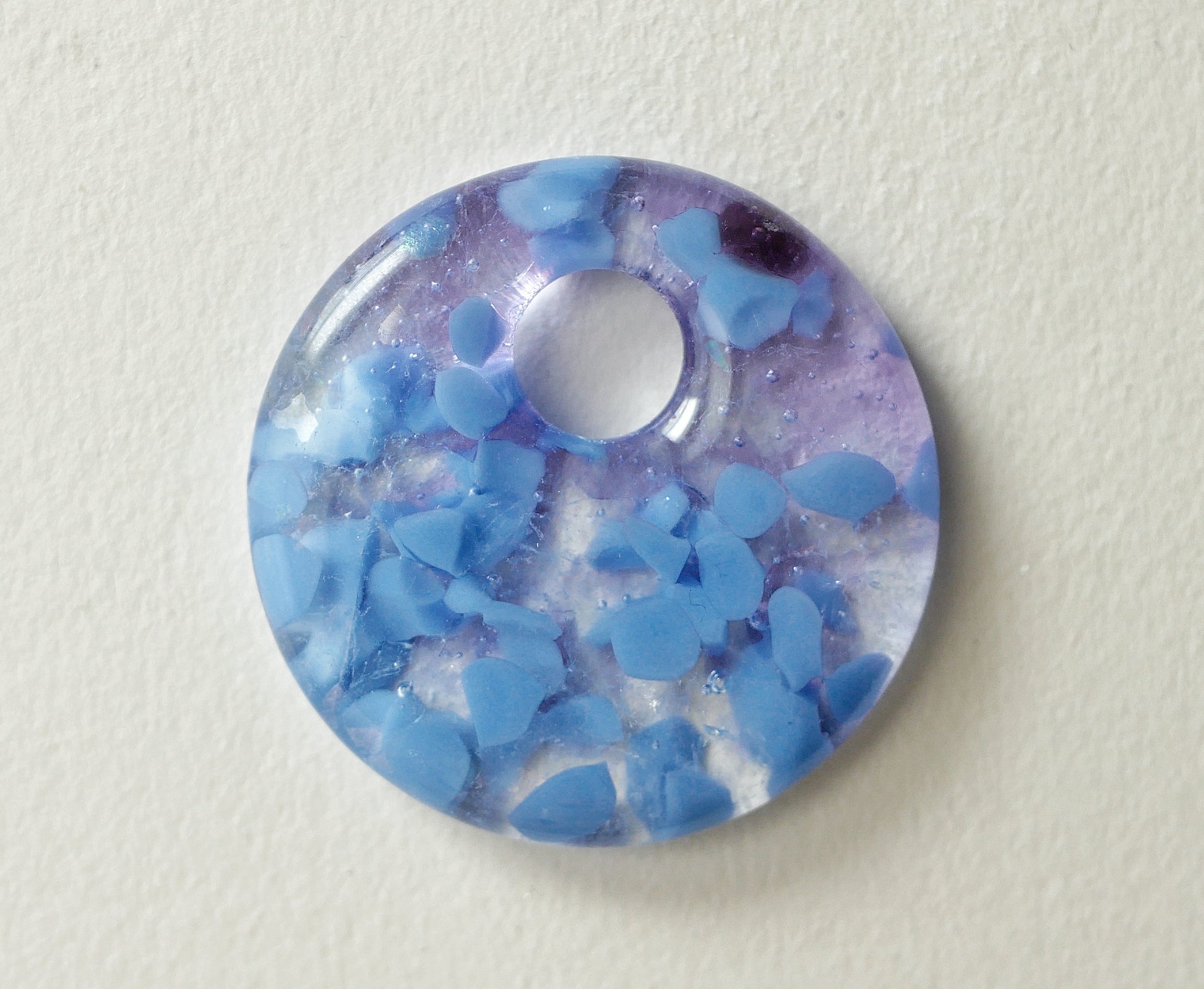 NOTE: This is a handmade glass item. That means it's a little bit fragile. I recommend not wearing it with other necklaces that can clink against it, avoiding dropping it, and don't take it suddenly from one temperature to another. Art glass is not mouth safe.