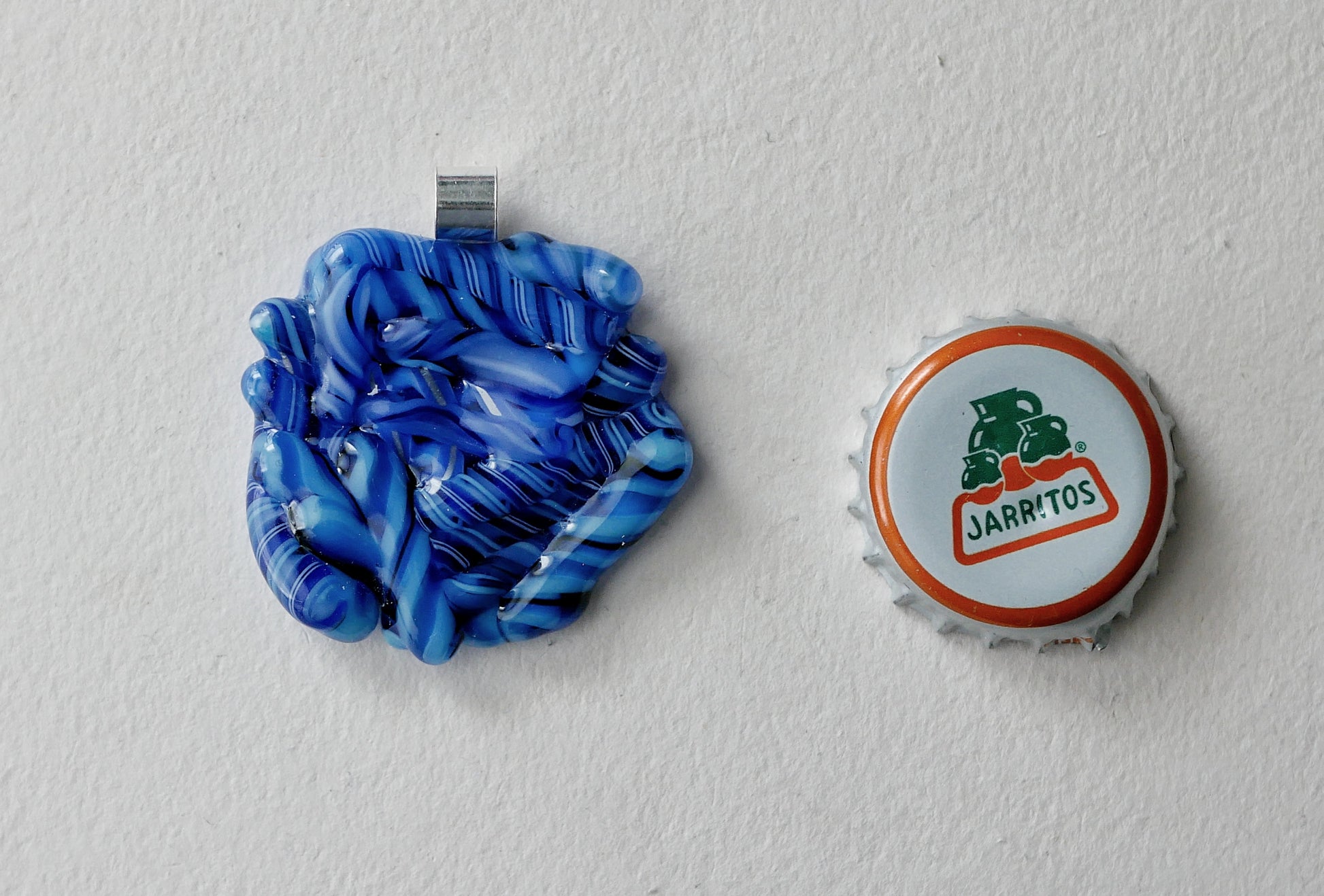 Handmade in my kiln by me! A pendant with a sterling silver bail.