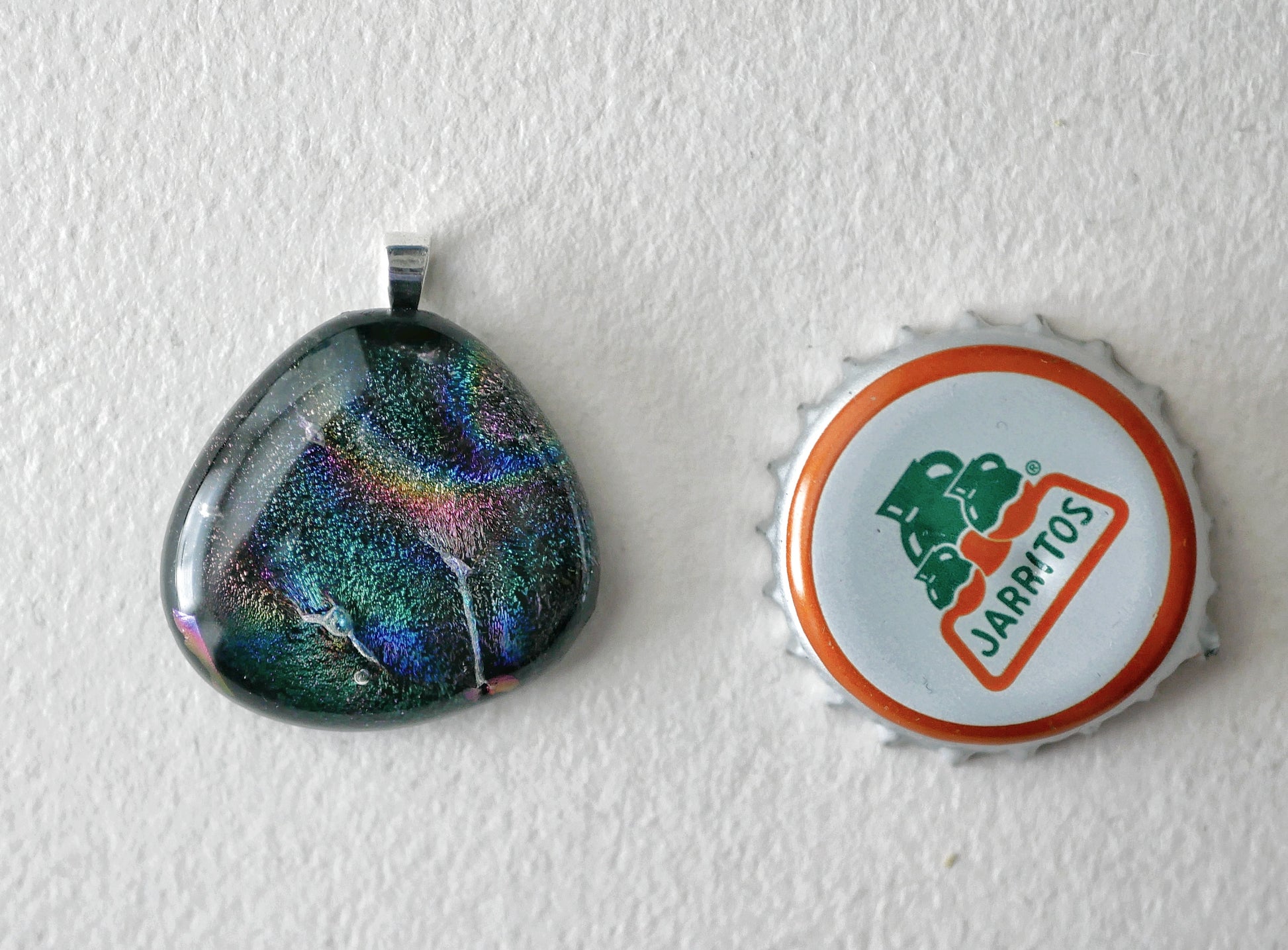 Handmade in my kiln by me! A small pendant with a sterling silver bail.