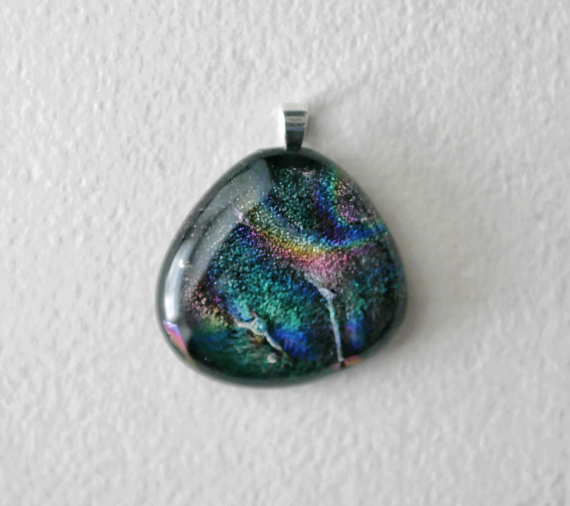 Dark Multicolor Dichroic Pendant #1 (Sterling Silver) (PENDANT ONLY)