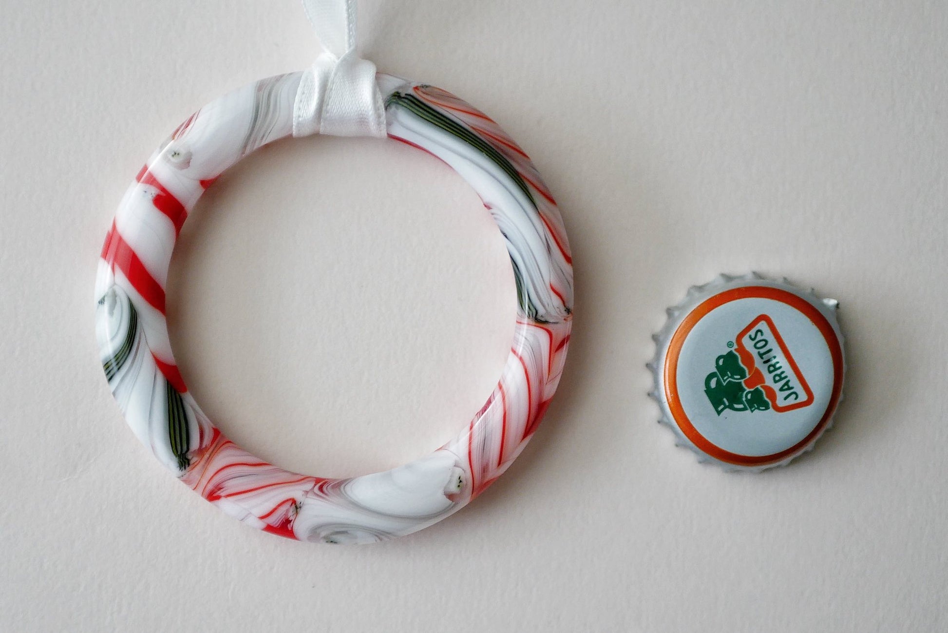 Handmade in my kiln by me! These work nicely as Christmas tree ornaments but also look good hanging on a wall or in a window. They come with a loop of ribbon for hanging.