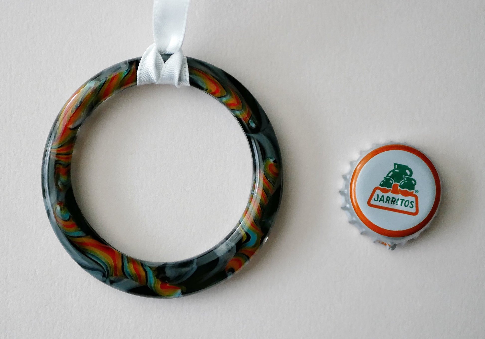 NOTE: This is a handmade fused glass item. It's sturdier than a blown glass ornament, but I would avoid dropping it as well as taking it suddenly from one temperature to another.