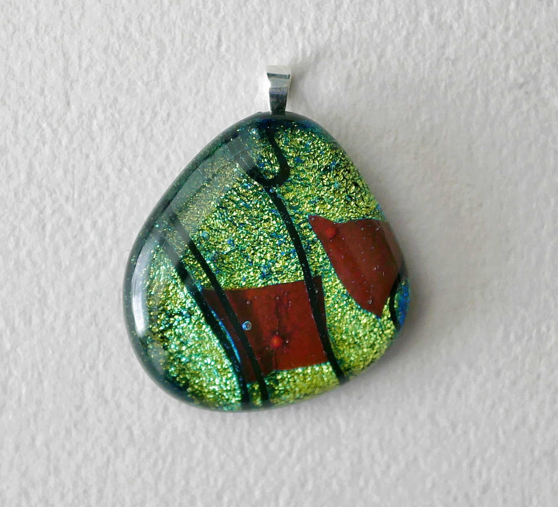 Handmade in my kiln by me! A small pendant with a sterling silver bail.