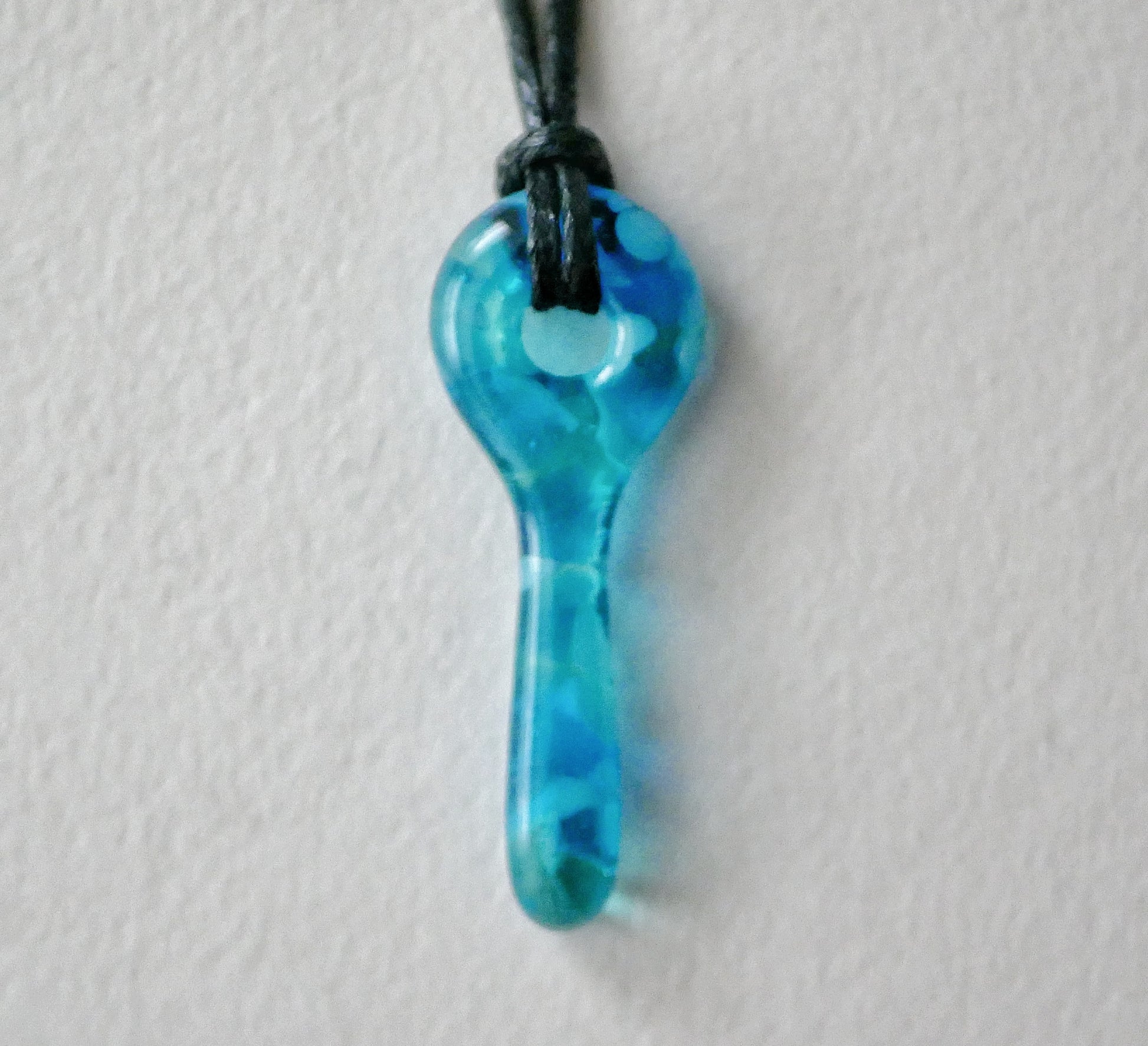 NOTE: This is a handmade glass item. That means it's a little bit fragile. I recommend not wearing it with other necklaces that can clink against it, avoiding dropping it, and don't take it suddenly from one temperature to another. Art glass is not mouth safe.