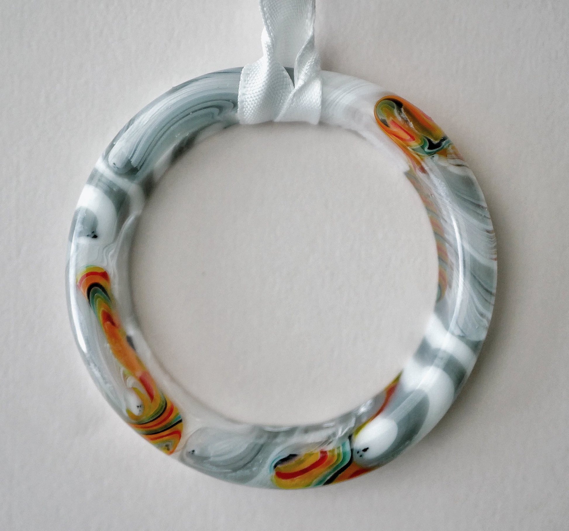 NOTE: This is a handmade fused glass item. It's sturdier than a blown glass ornament, but I would avoid dropping it as well as taking it suddenly from one temperature to another.