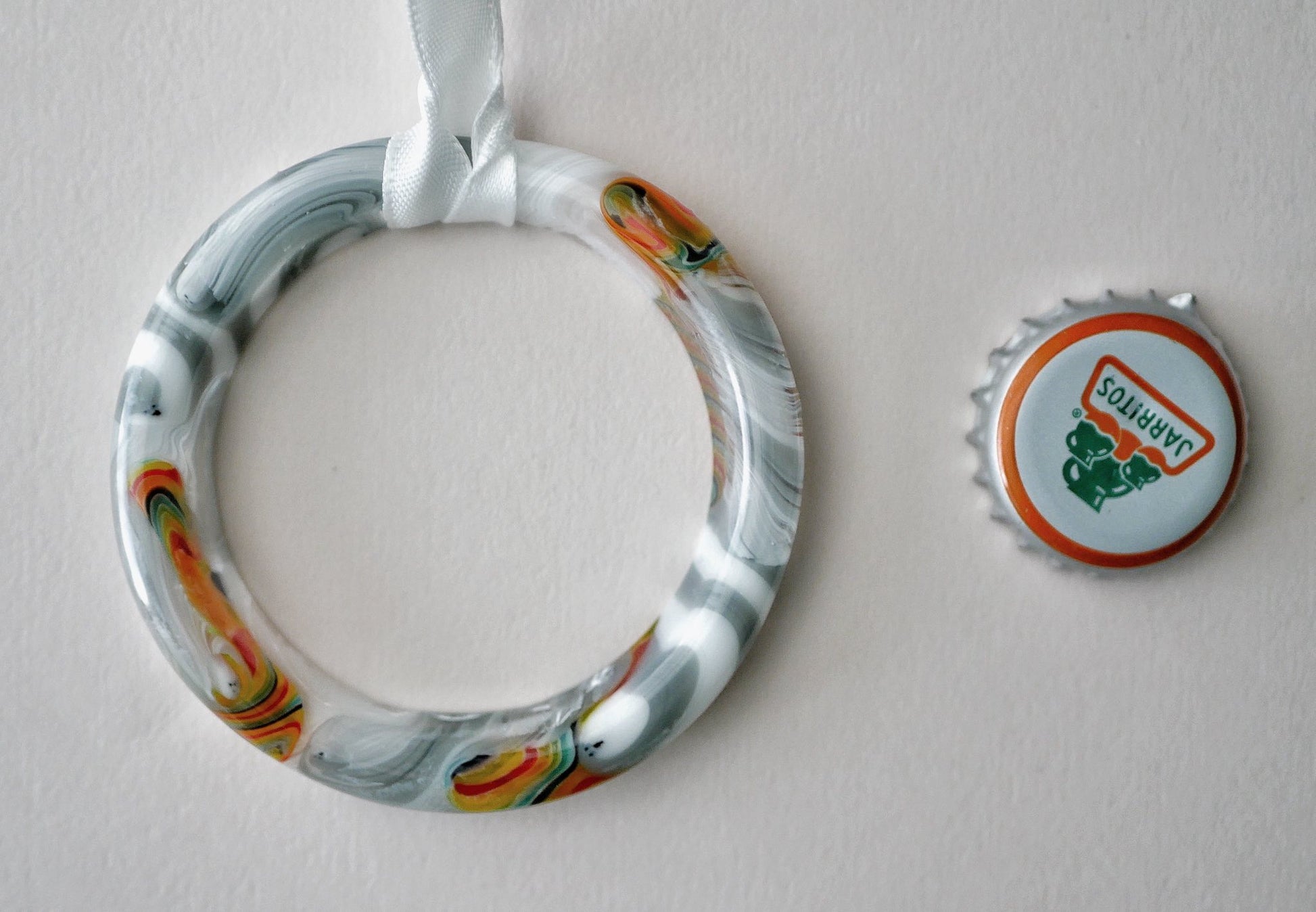 Handmade in my kiln by me! These work nicely as Christmas tree ornaments but also look good hanging on a wall or in a window. They come with a loop of ribbon for hanging.