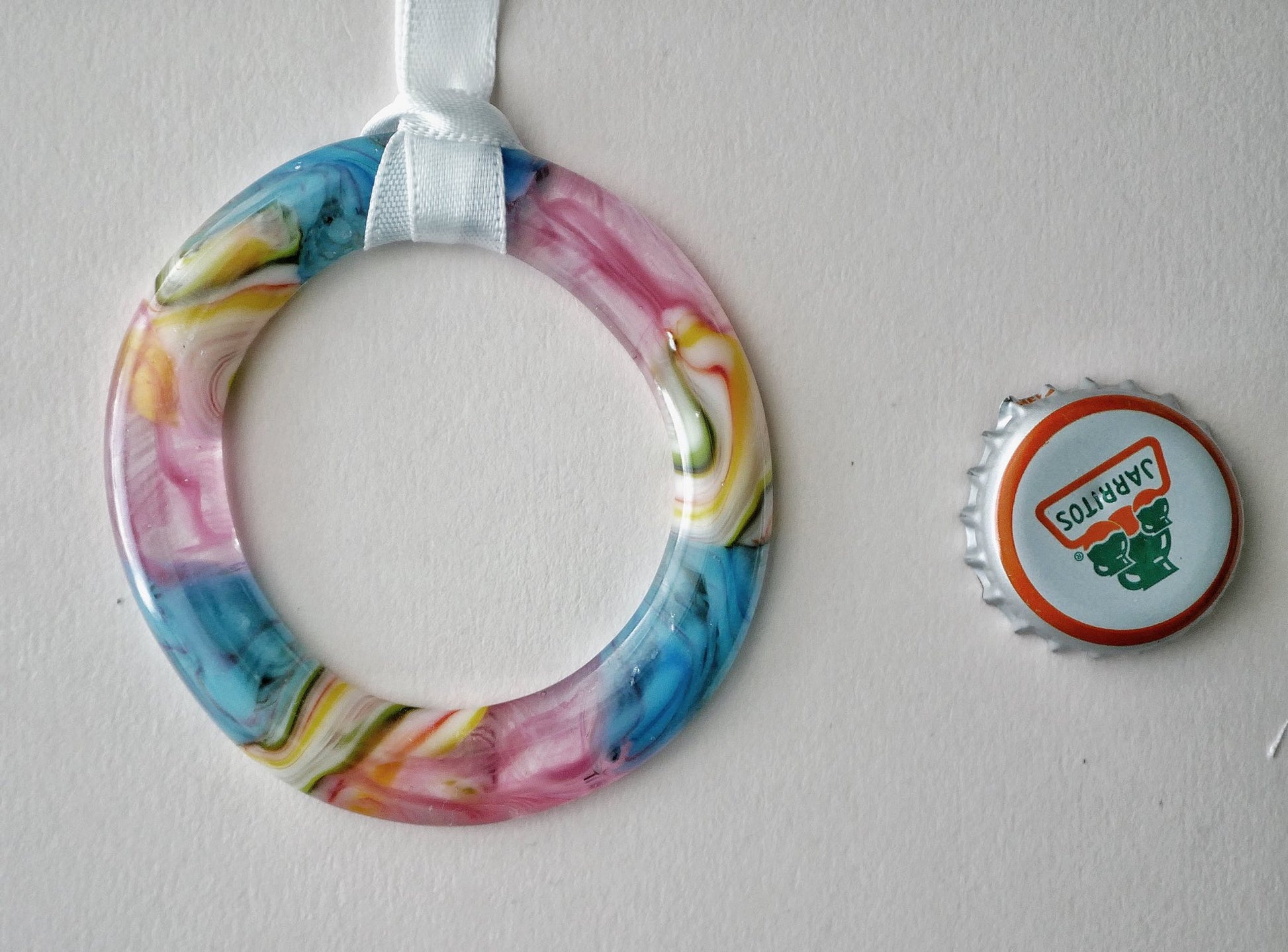 NOTE: This is a handmade fused glass item. It's sturdier than a blown glass ornament, but I would avoid dropping it as well as taking it suddenly from one temperature to another.