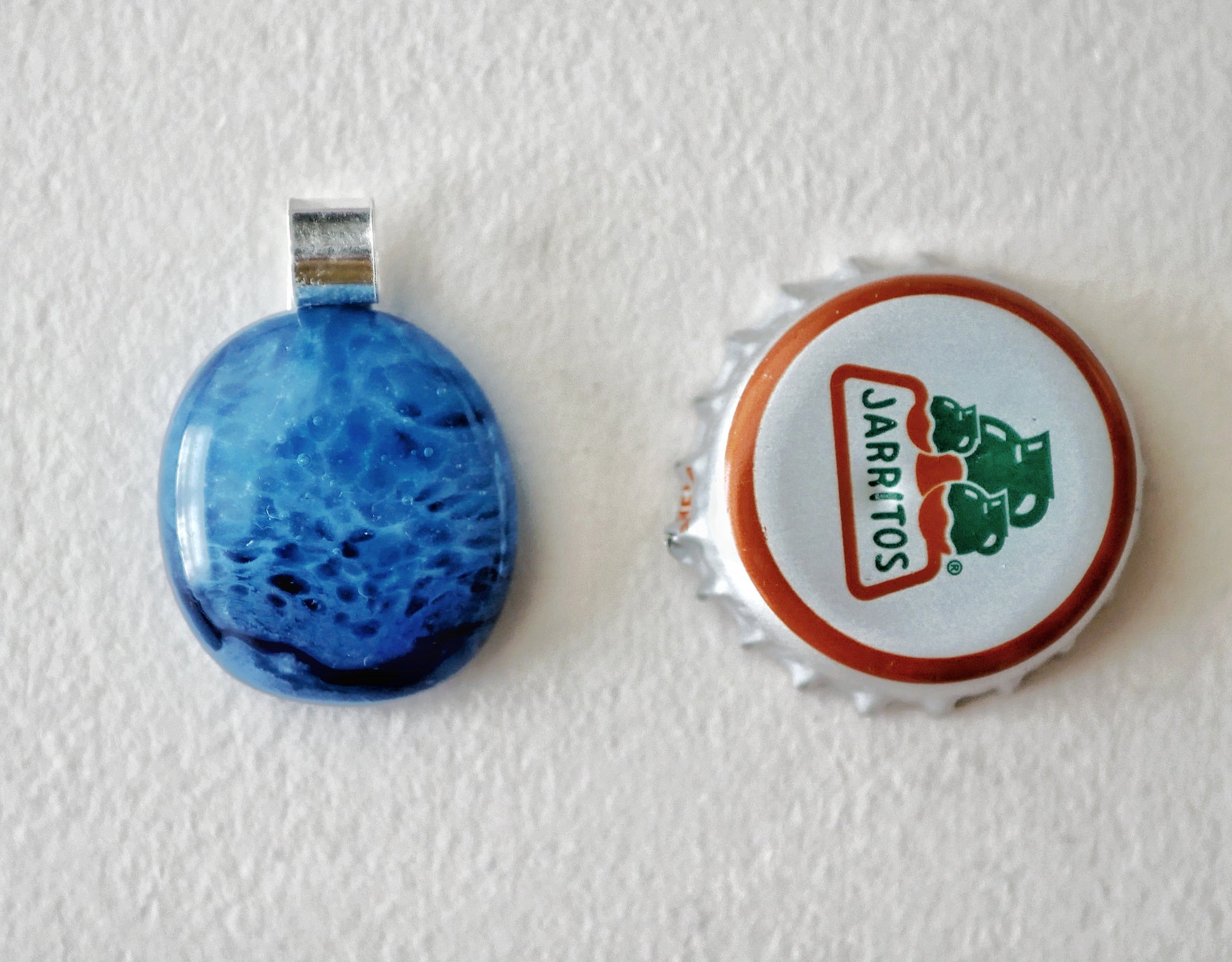 Handmade in my kiln by me! A small pendant with a sterling silver bail.