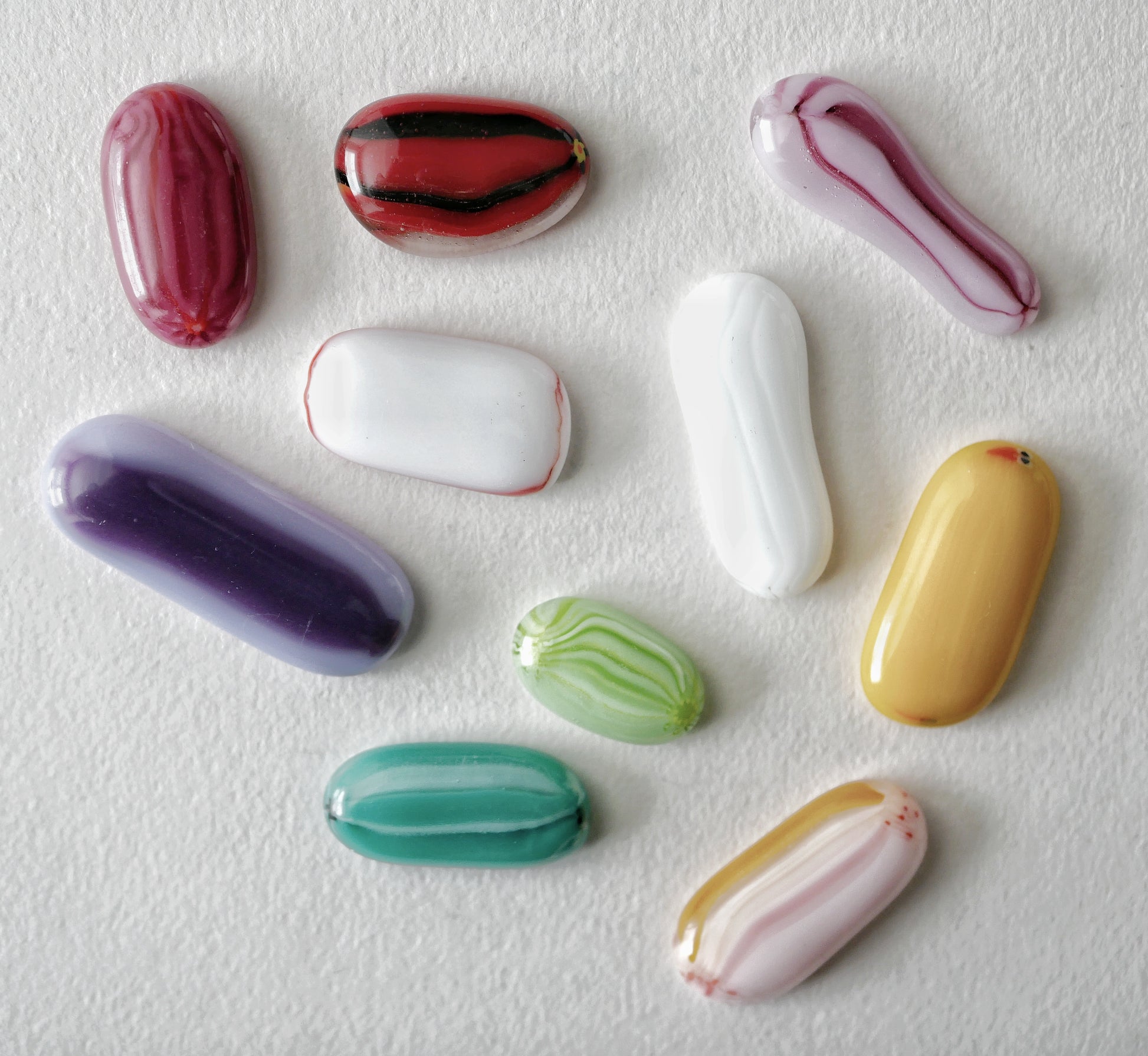 Fused glass cabochons on their own, for arts and crafts projects or just for having. These ones are made from murrine scrap. You will receive the 10 cabochons pictured.