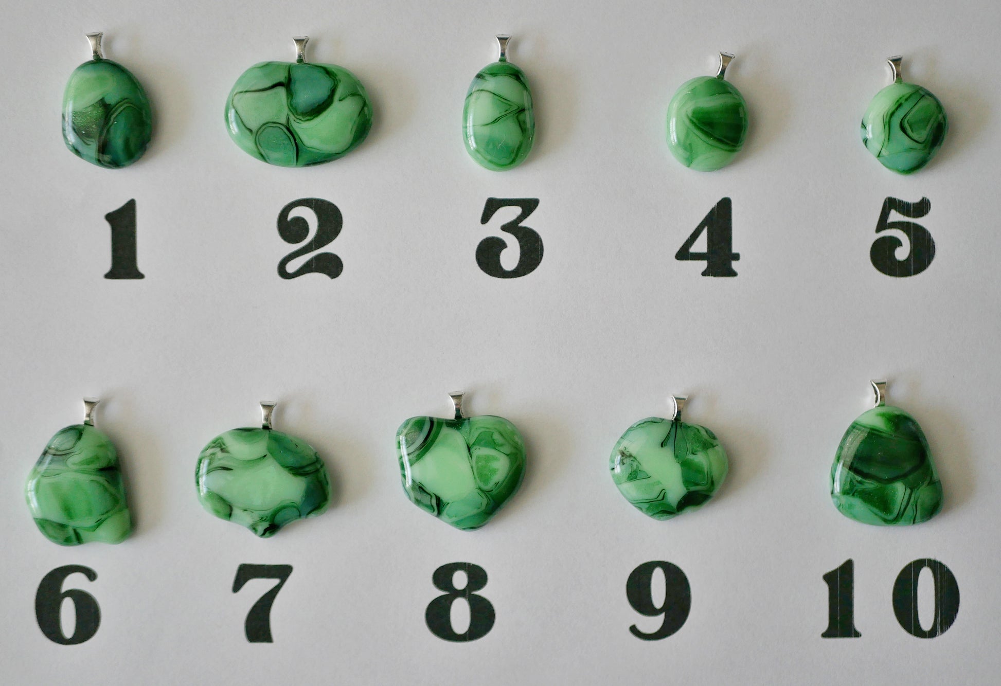 Handmade in my kiln by me! Mottled green glass pendants with a bit of sparkle. Base metal findings.