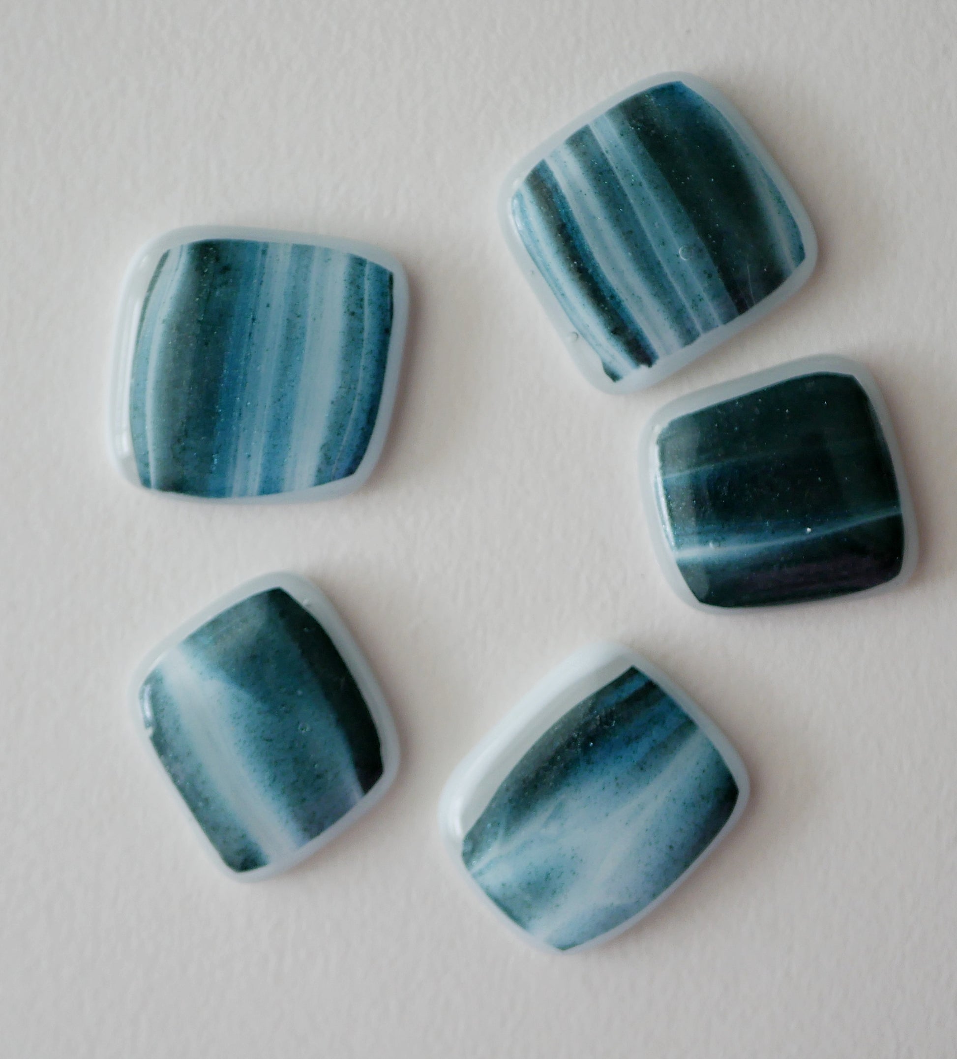 Fused glass cabochons on their own, for arts and crafts projects or just for having. You will receive the 5 cabochons pictured.