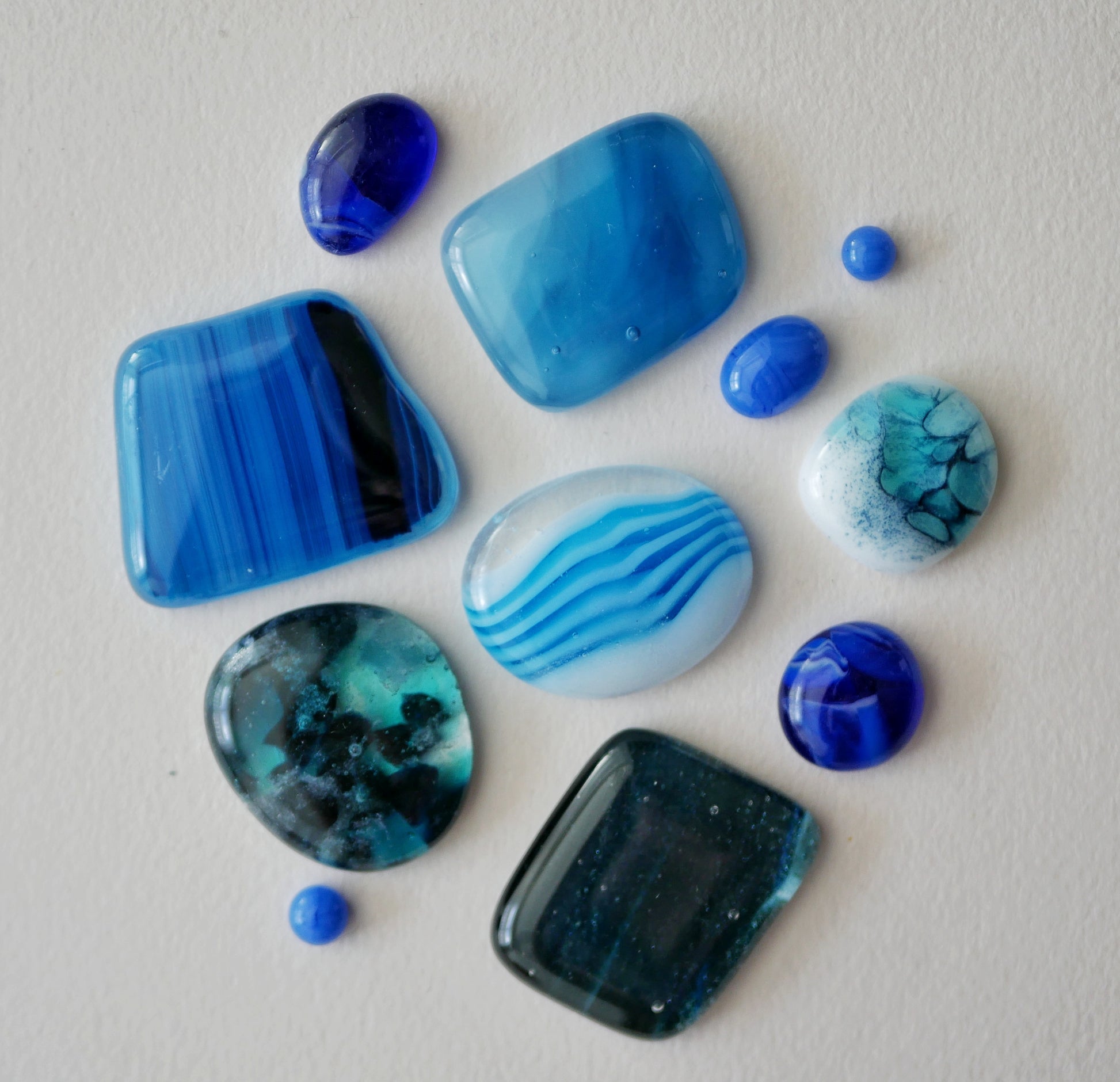 You'll get at least 10 glass pieces of a variety of sizes and designs in an oceanic theme.