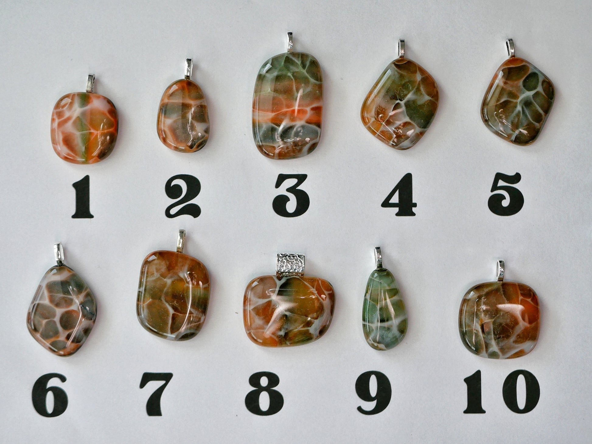 Handmade in my kiln by me! A pendant with a pattern resembling dragon scales on a 24 inch snake chain.
