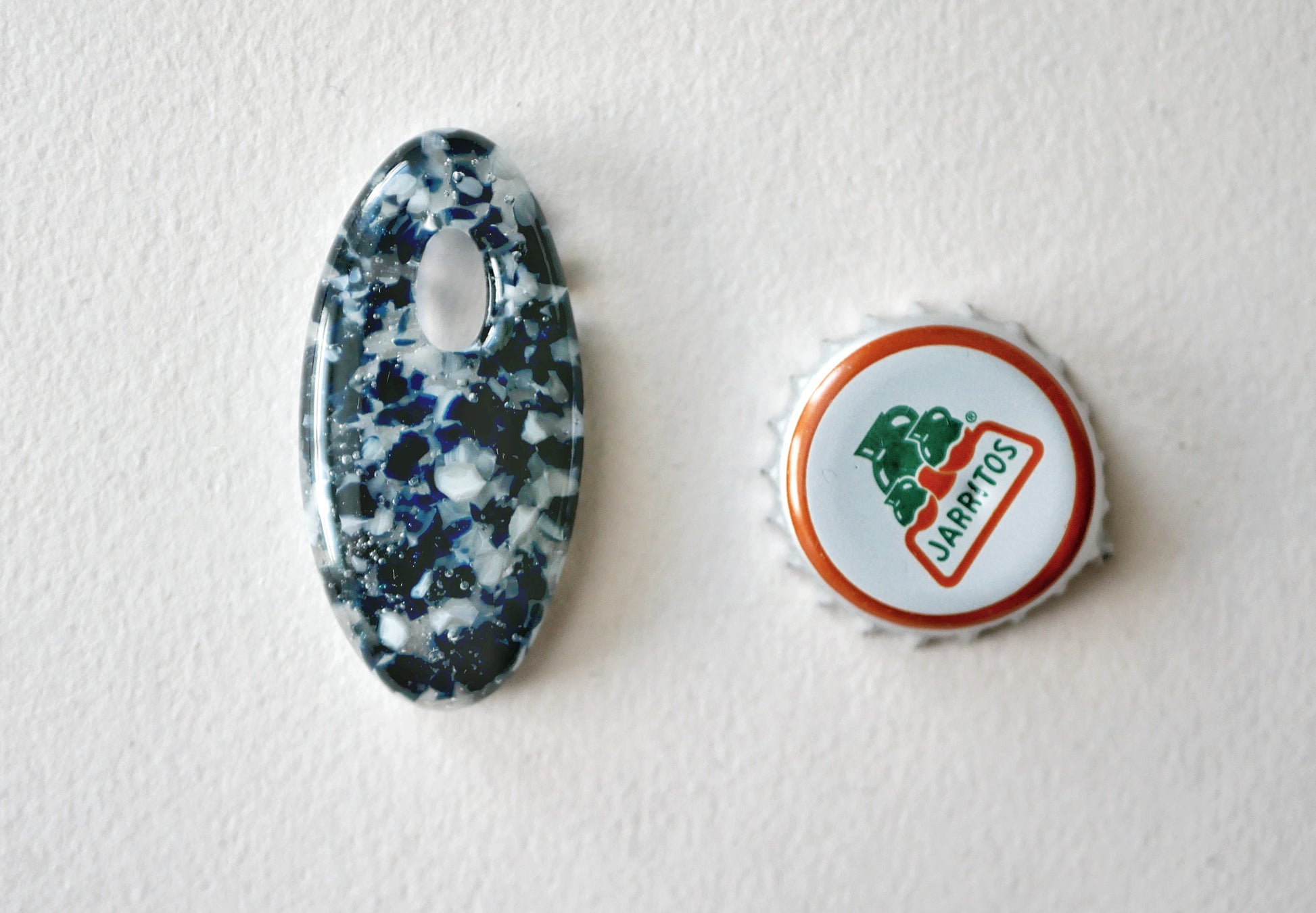 Handmade in my kiln by me! There's a few of these that have slightly different patterning, you may not receive the exact one in the picture.