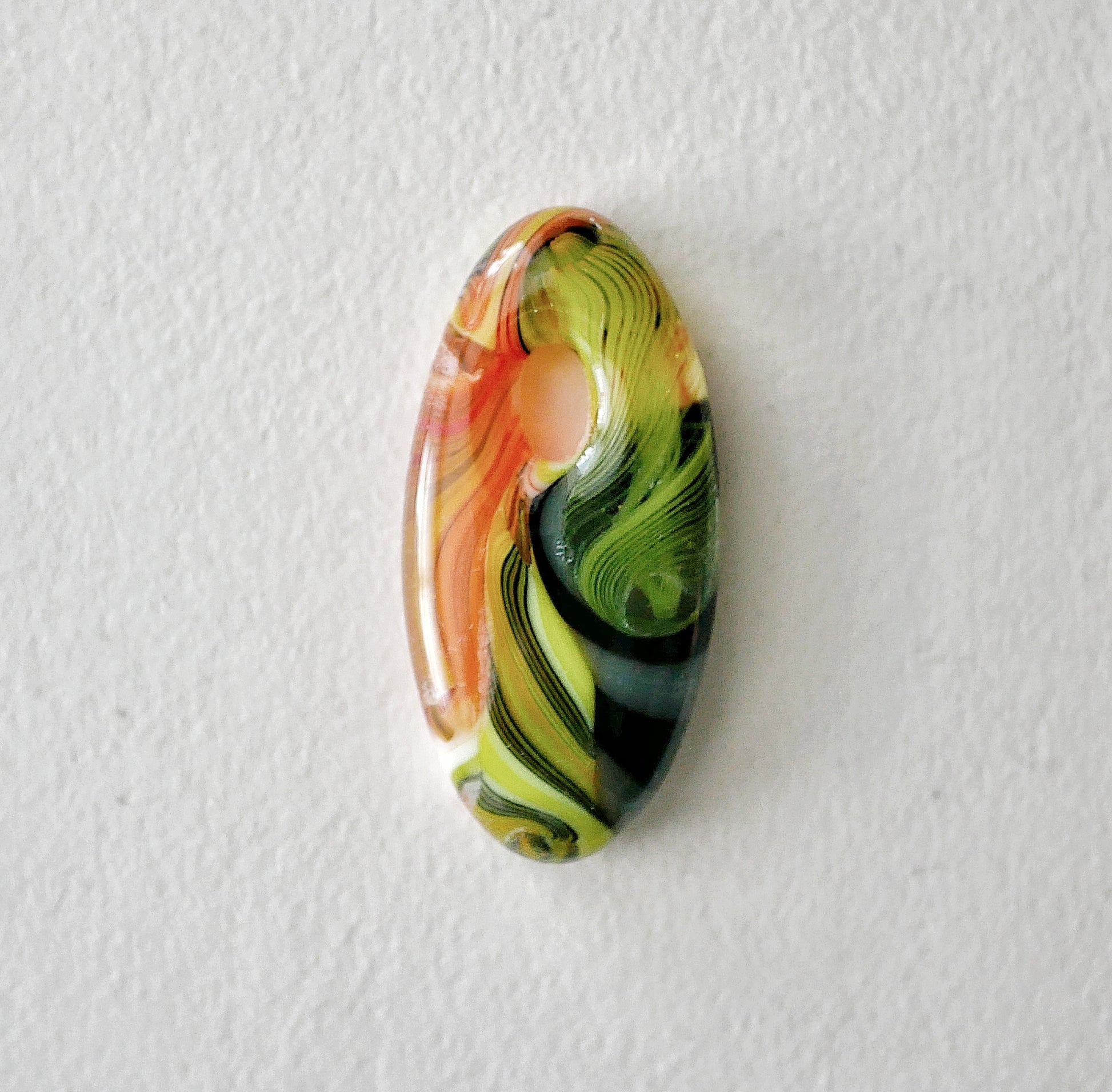 NOTE: This is a handmade glass item. That means it's a little bit fragile. I recommend not wearing it with other necklaces that can clink against it, avoiding dropping it, and don't take it suddenly from one temperature to another. Art glass is not mouth safe.