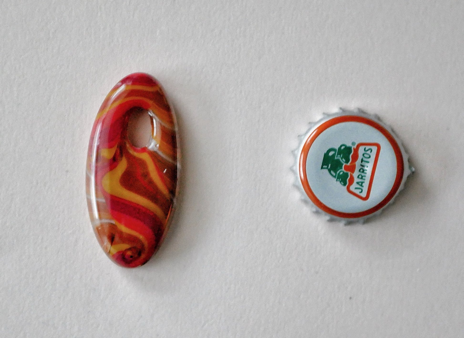 Handmade in my kiln by me! The swirling colors in these come from twisted glass cane that has been cut up and remelted.