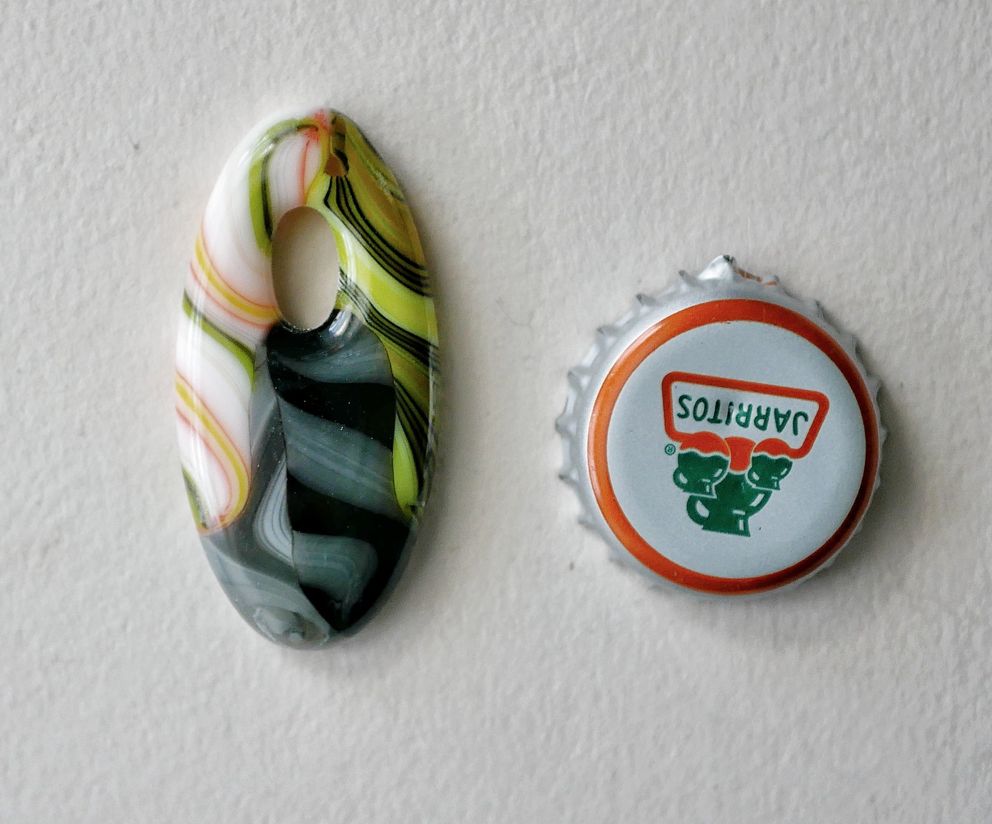 Handmade in my kiln by me! The swirling colors in these come from twisted glass cane that has been cut up and remelted.